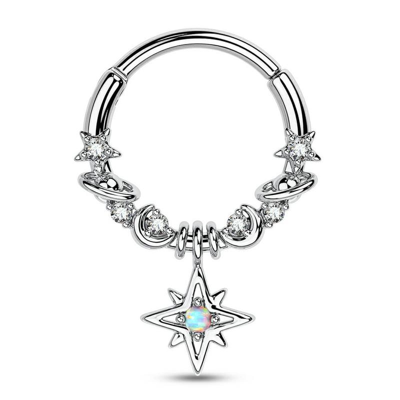 Elevate your style with the Oufer 16G Star/Moon/Planet Dangle Septum Nose Ring. Choose between gold or silver finishes. This ring offers a star, moon, or planet dangle for a unique flair. Perfect for daily wear, it suits both men and women. Each pack includes one nose ring, enhancing your jewelry collection effortlessly.