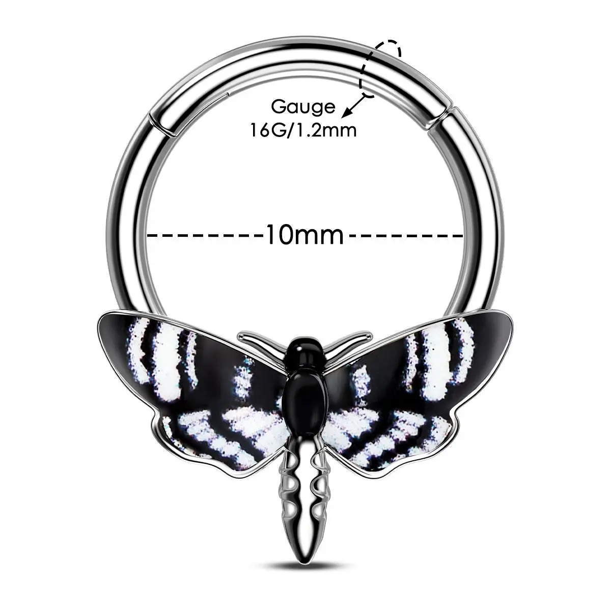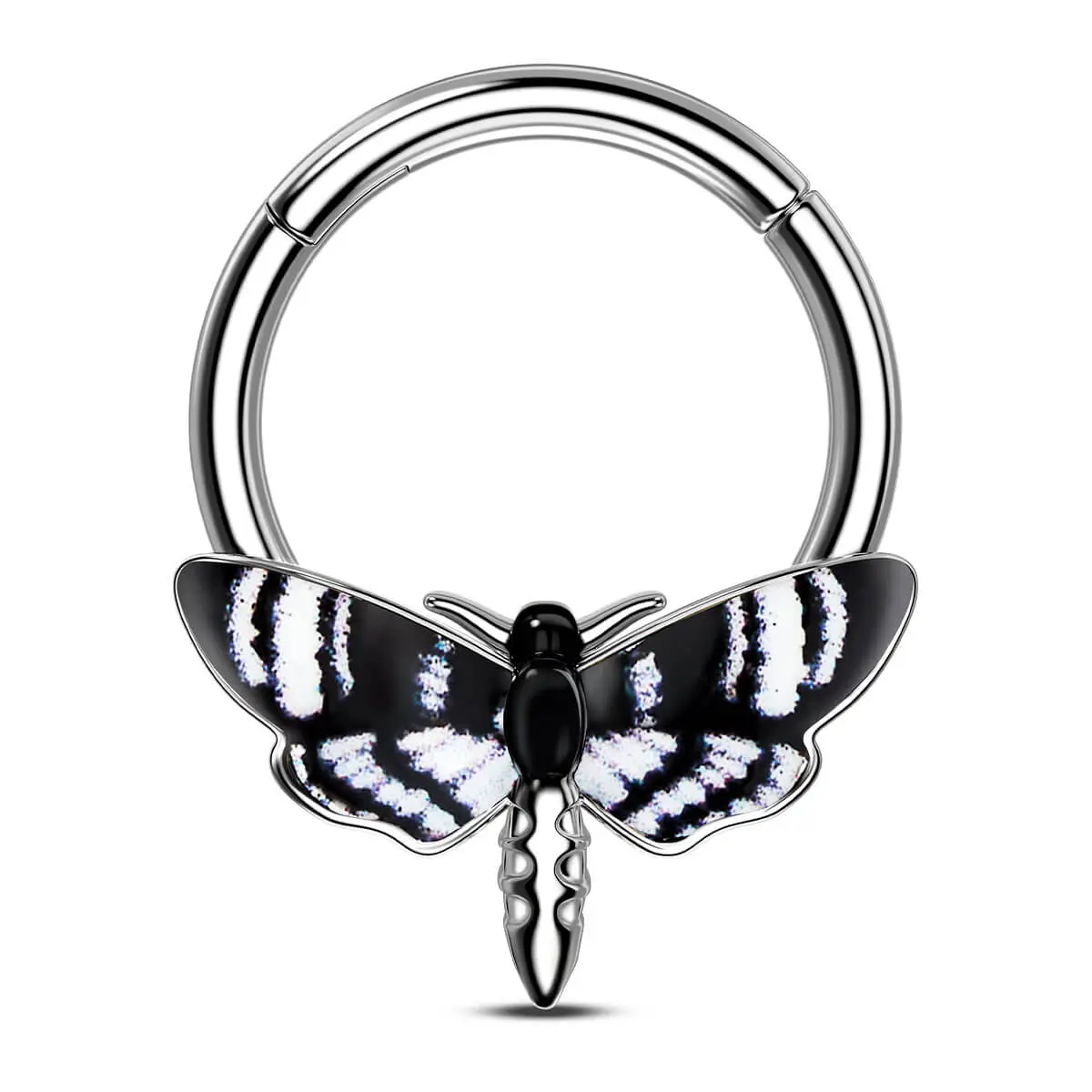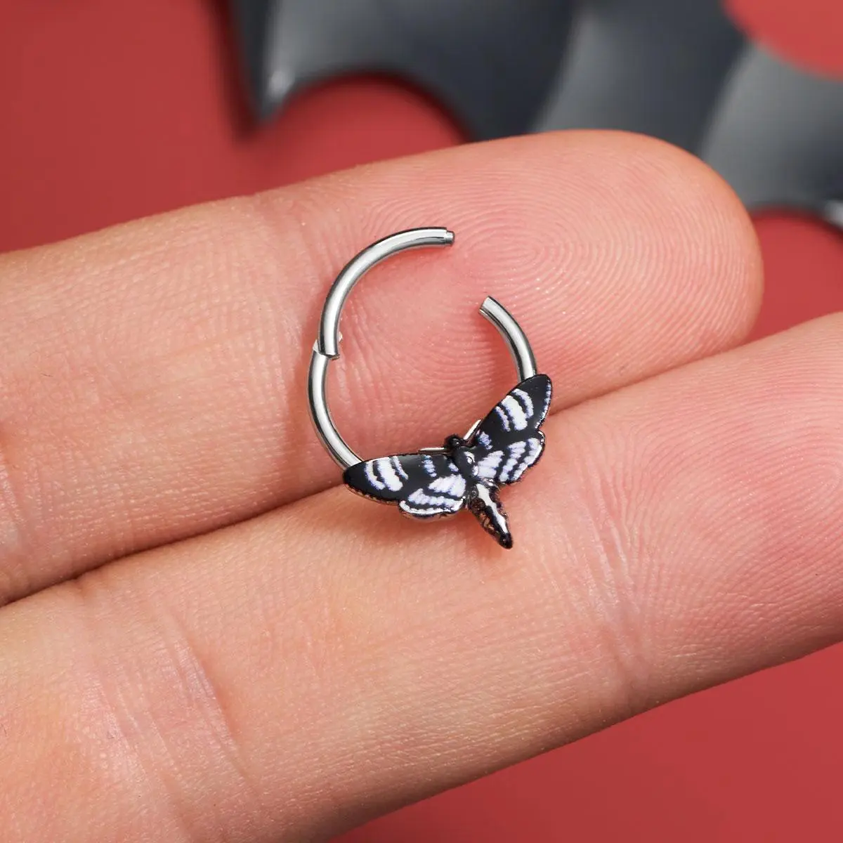 🌟 Oufer Halloween 16G Hawk Black White Moth Septum Nose Piercing Ring 🌟