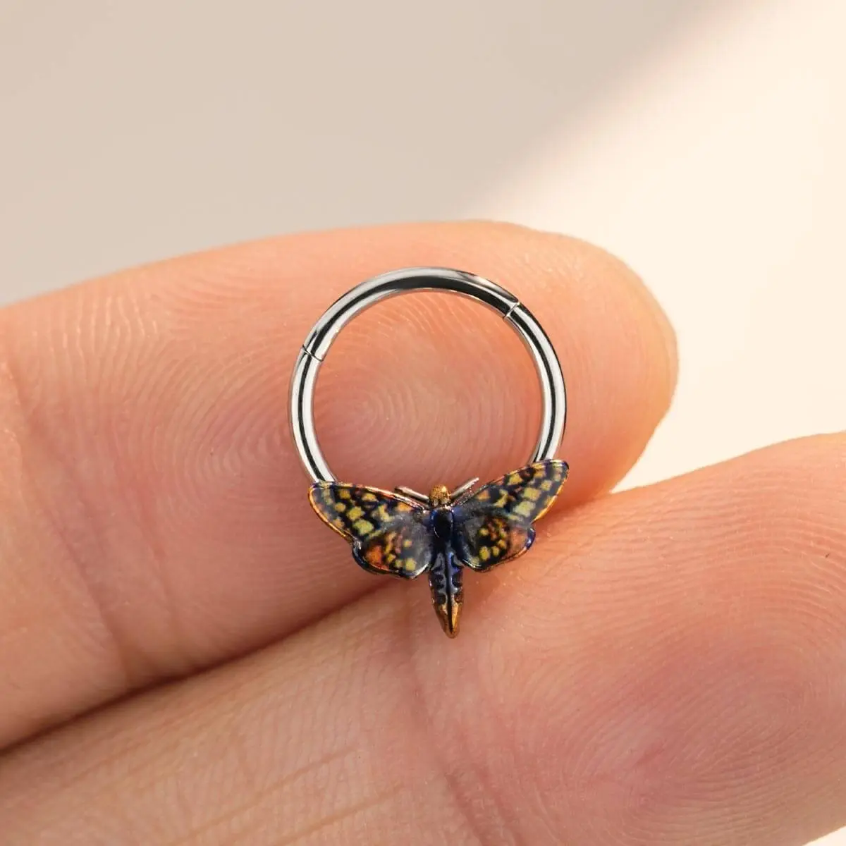 ·This body jewelry features a detailed hawk moth motif. 🦋