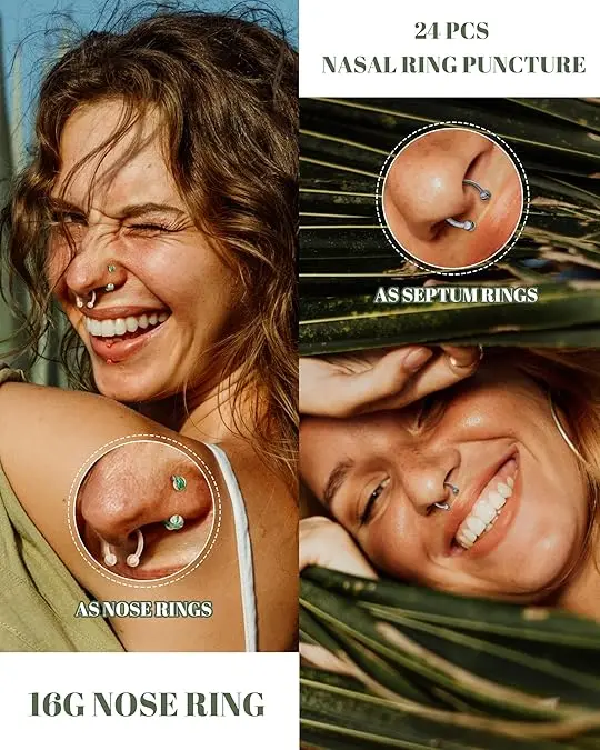 Discover the Bisteel 24Pcs Septum Rings 16G Septum Jewelry, a set of hypoallergenic 316L Stainless Steel Septum Rings designed for both women and men. These rings are made from high-quality 316L Stainless Steel and feature cubic zirconia, ensuring a beautiful and sparkling appearance.