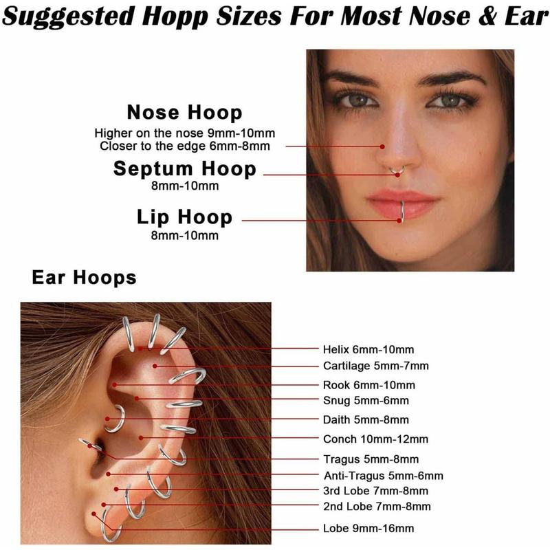 Suggested Hoop Size for Most Nose and Ear Piercings