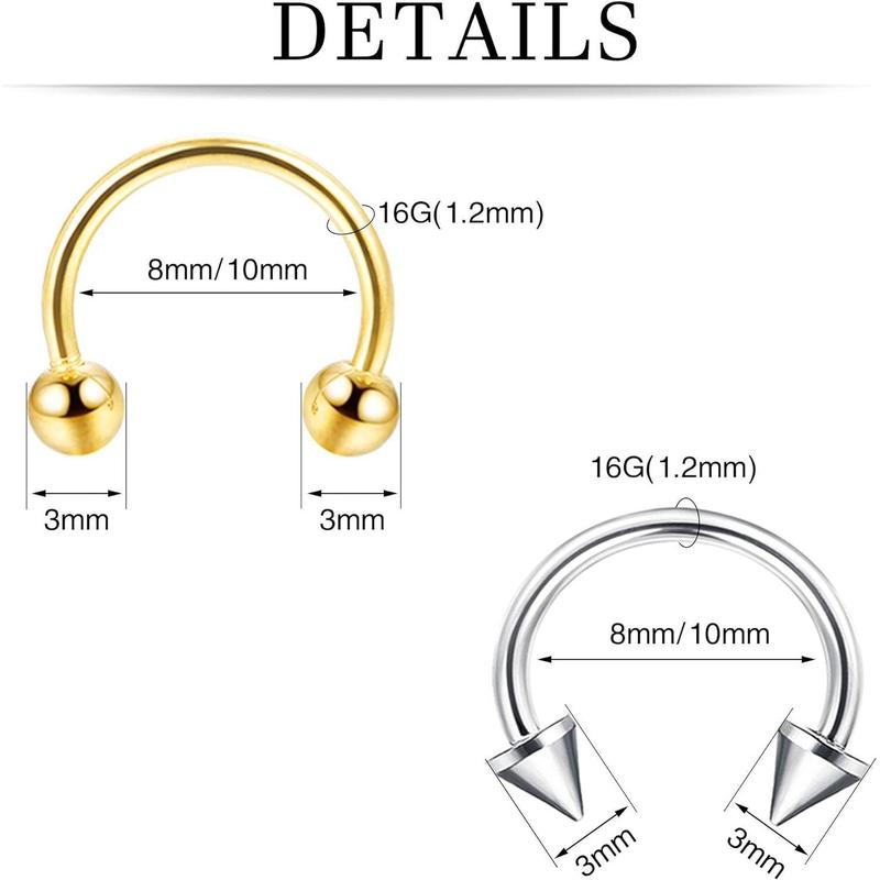 - Comfortable horseshoe shape: The horseshoe shape of the septum ring provides a comfortable fit, allowing you to wear it all day without discomfort.