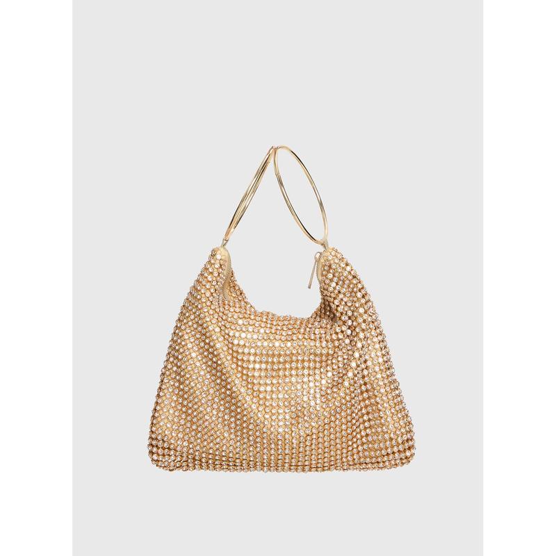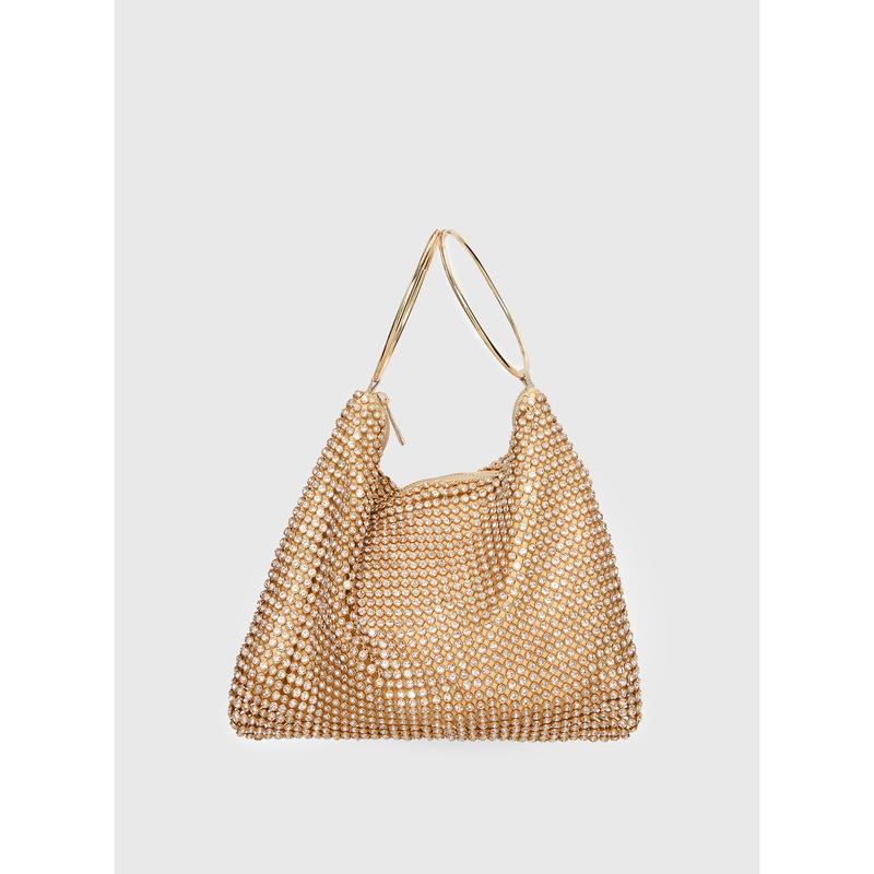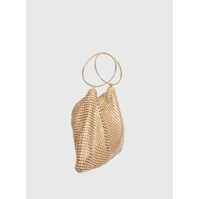 ·Gold circular handles, diamante detailing, gold hardware, zip closure
