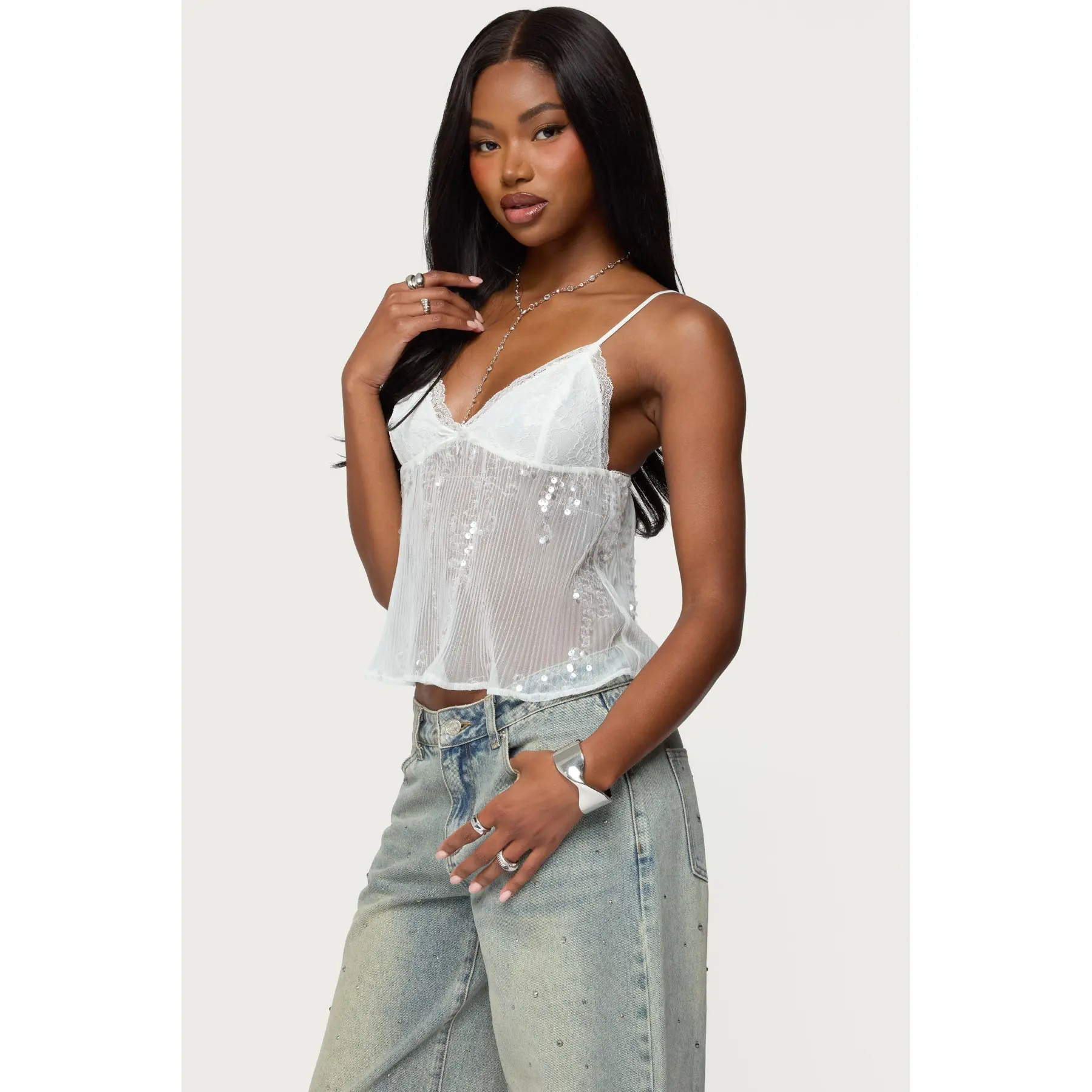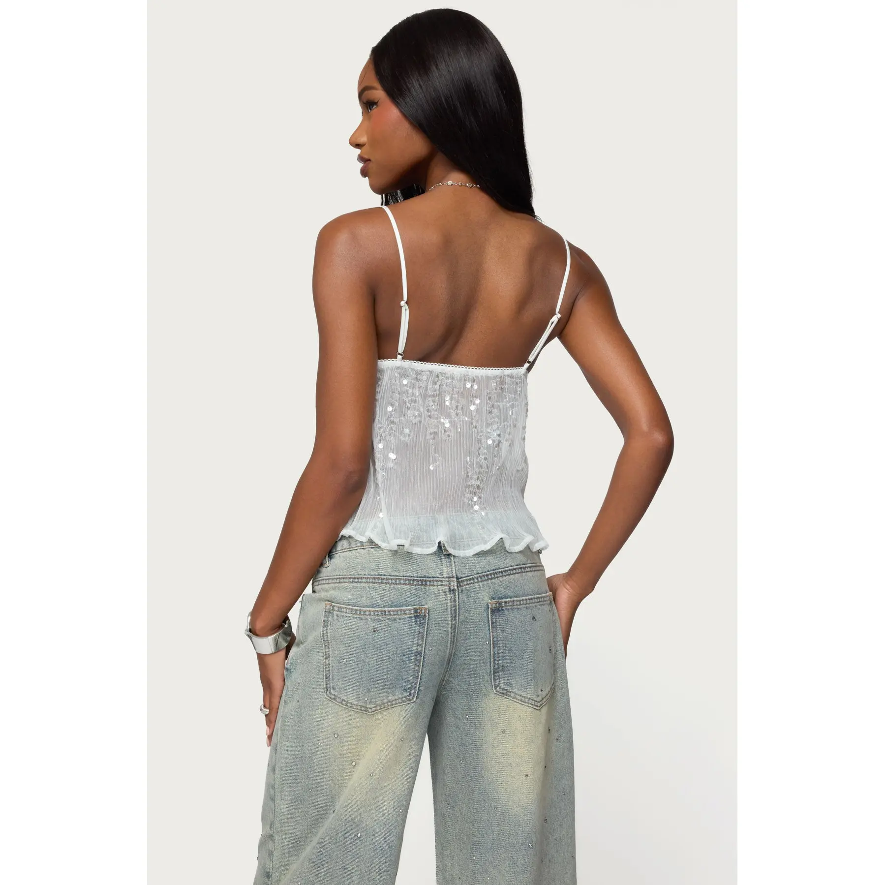 the sequins omg #edikted #babydolltop #sheertop #goingoutoutfit #tiktokshopstockup