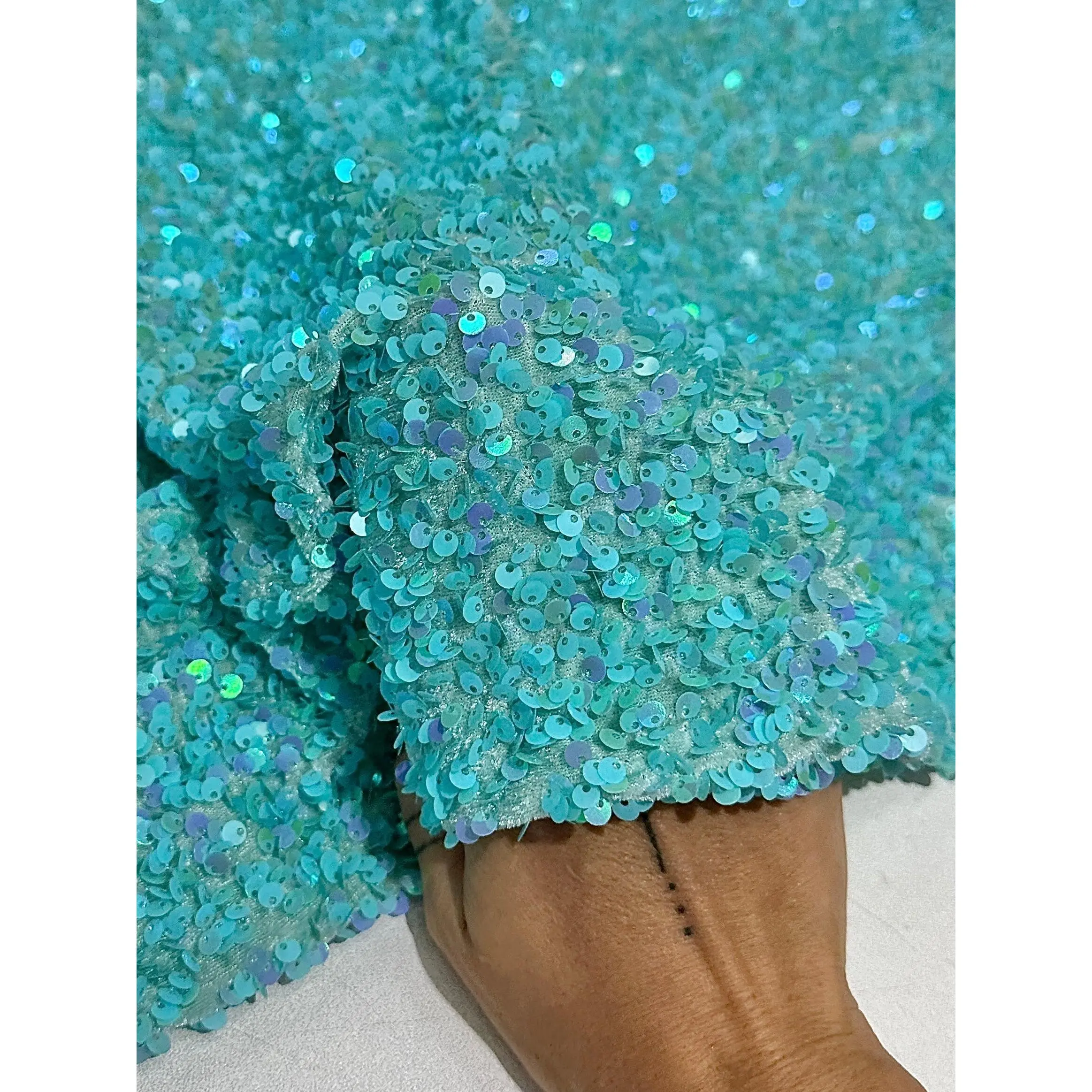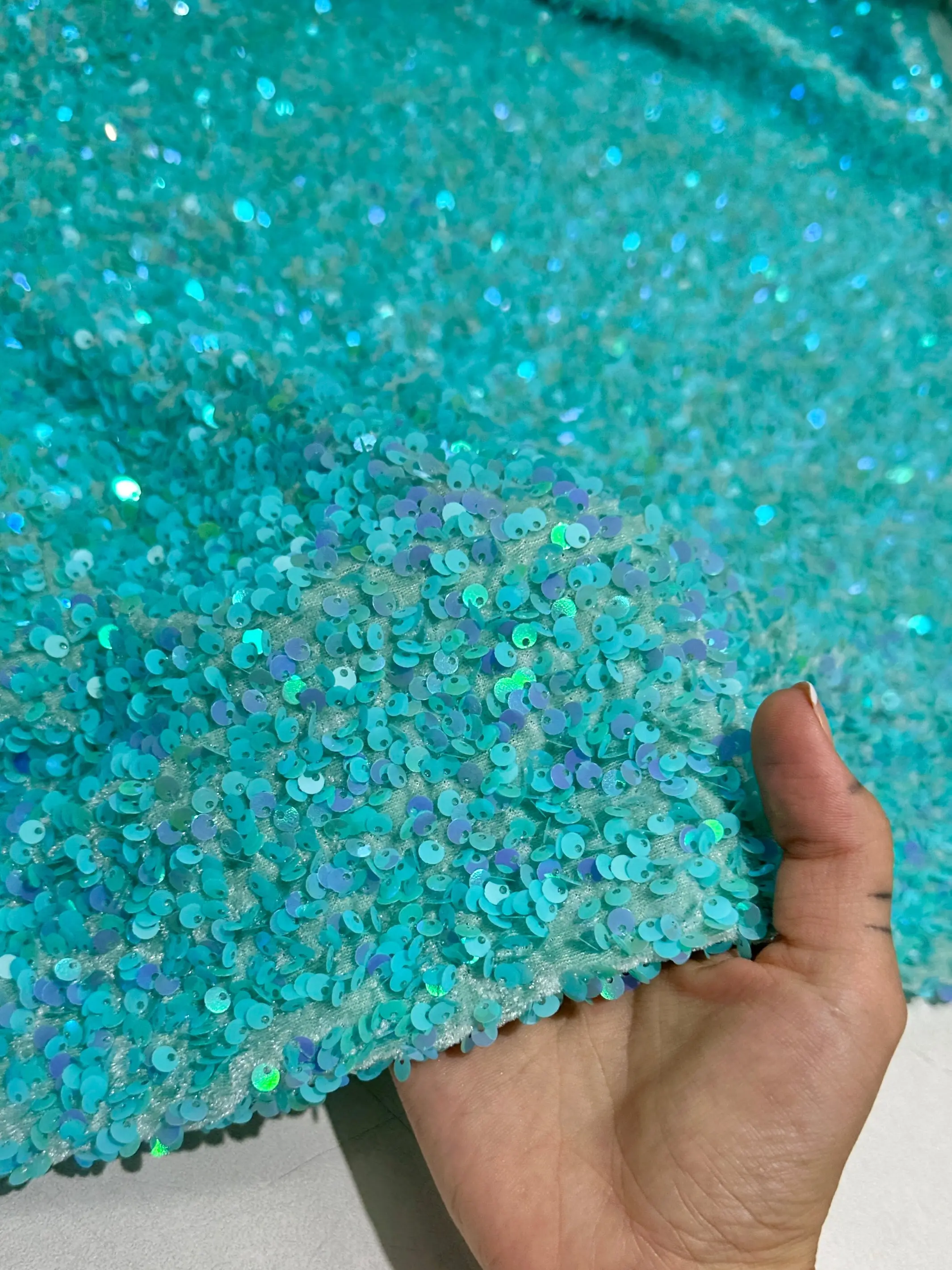 This unique fabric features a lovely stretch velvet base that is heavily embellished with sequins. Our Sequin Velvet fabric has sequins embroidered throughout the whole fabric. This fabric is ideal for decorative and apparel purposes. Uses: Dresses, Gowns, Home Decor, Party Decorations, Backdrops, Costumes, Clothing Accessories, Table Runners, and much more! Durable Velvet