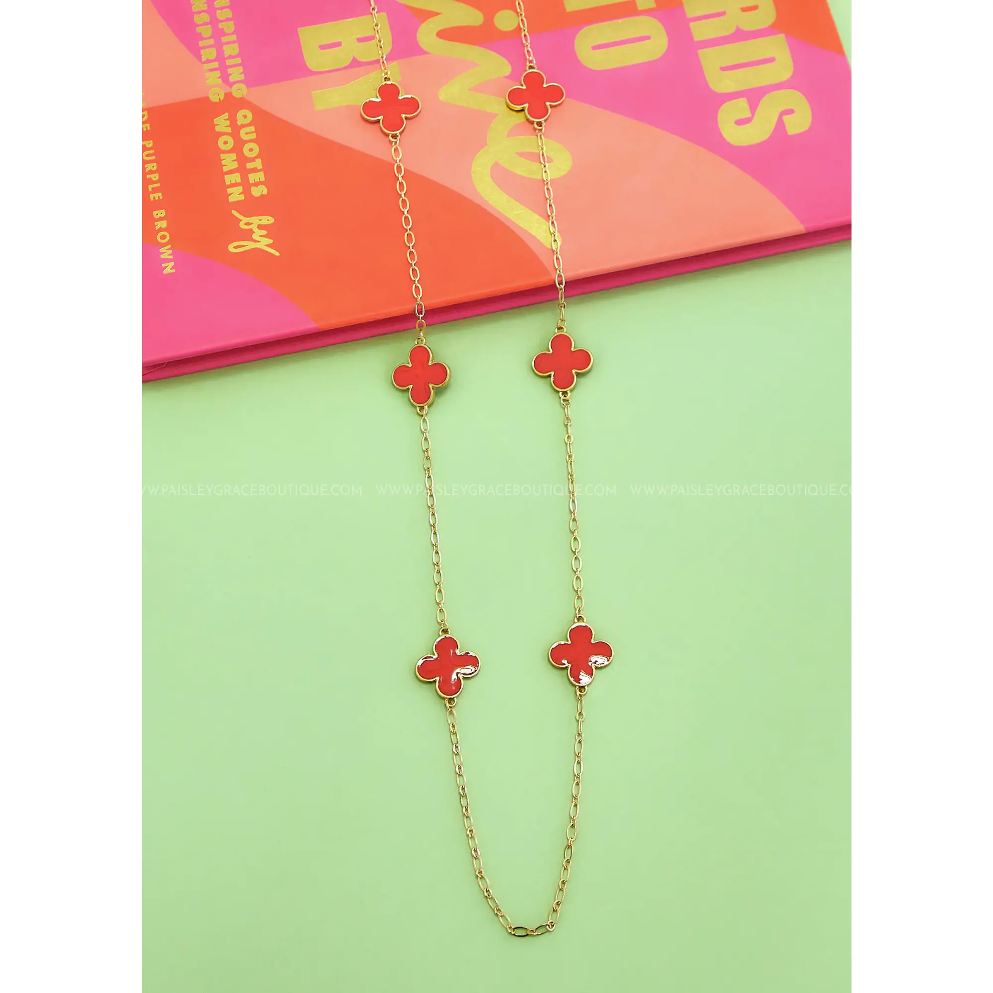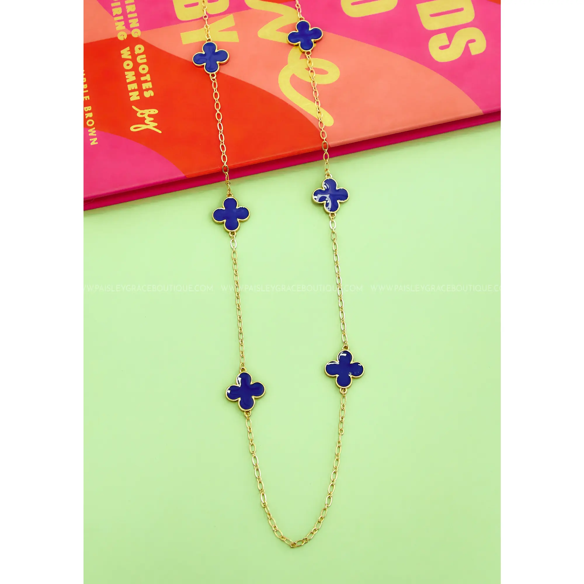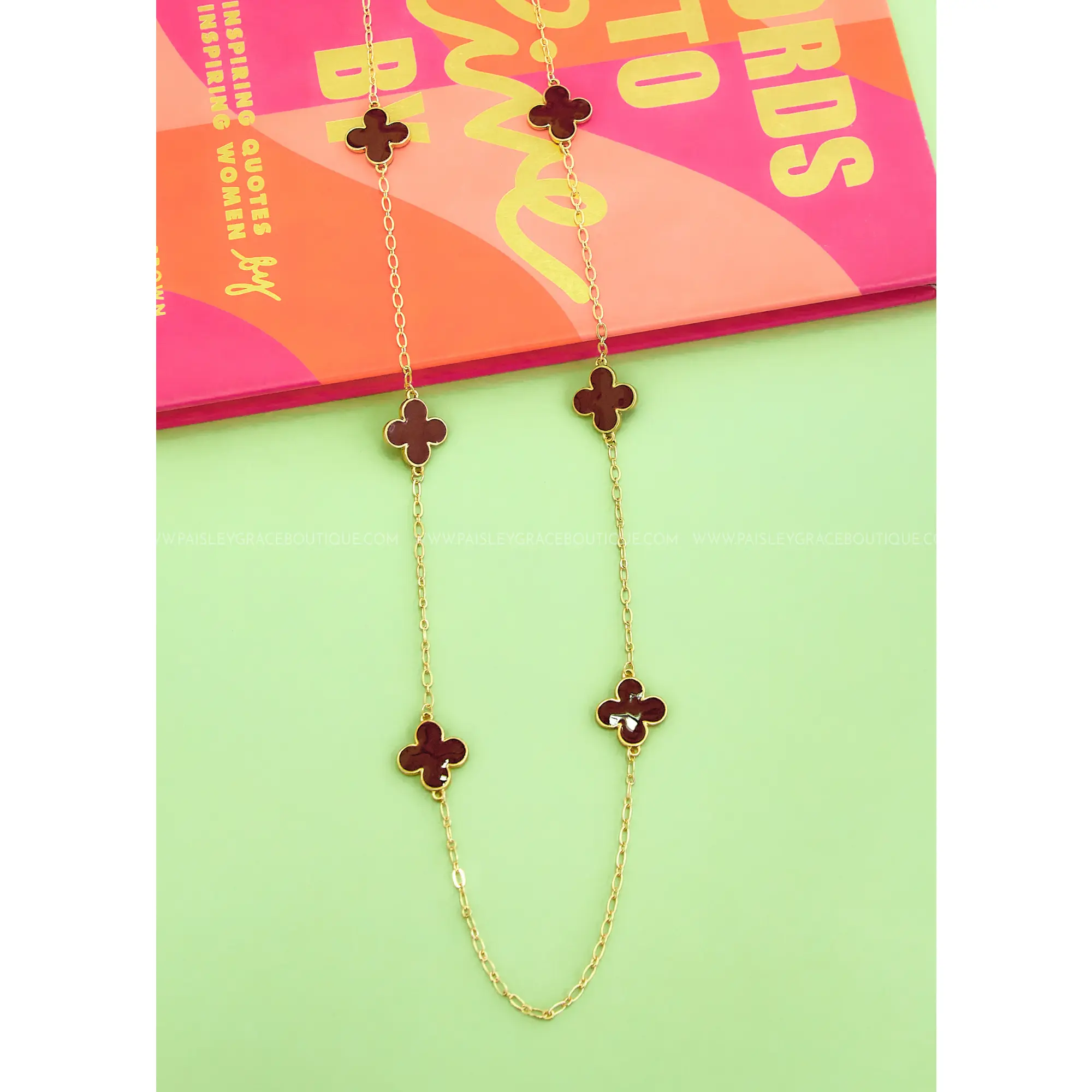 Brighten up your look with our collection of long station clover necklaces, featuring four vibrant colors to choose from to match any mood.