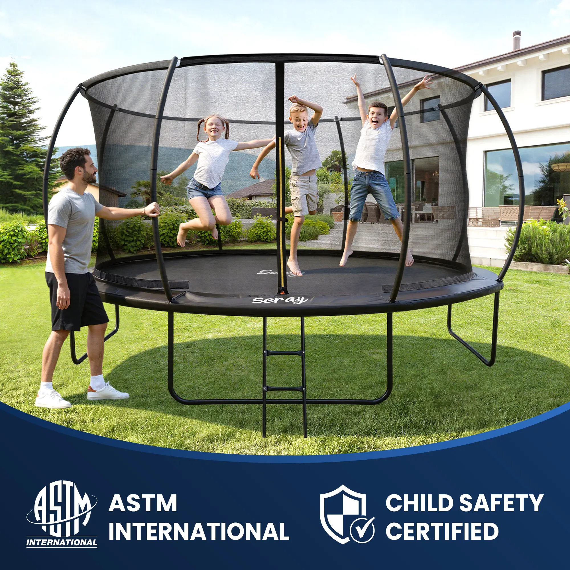 Seray 10-14FT Recreational Trampoline with Safety Enclosure Net and Ladder, Anti-Rust Coating & ASTM Approved, Reversible Outdoor Trampoline for Kids and Adults, Backyard Family Fun, Birthday Gift IdeasSeray 10-14FT Recreational Trampoline with Safety Enclosure Net and Ladder, Anti-Rust Coating & ASTM Approved, Reversible Outdoor Trampoline for Kids and Adults, Backyard Family Fun, Birthday Gift Ideas