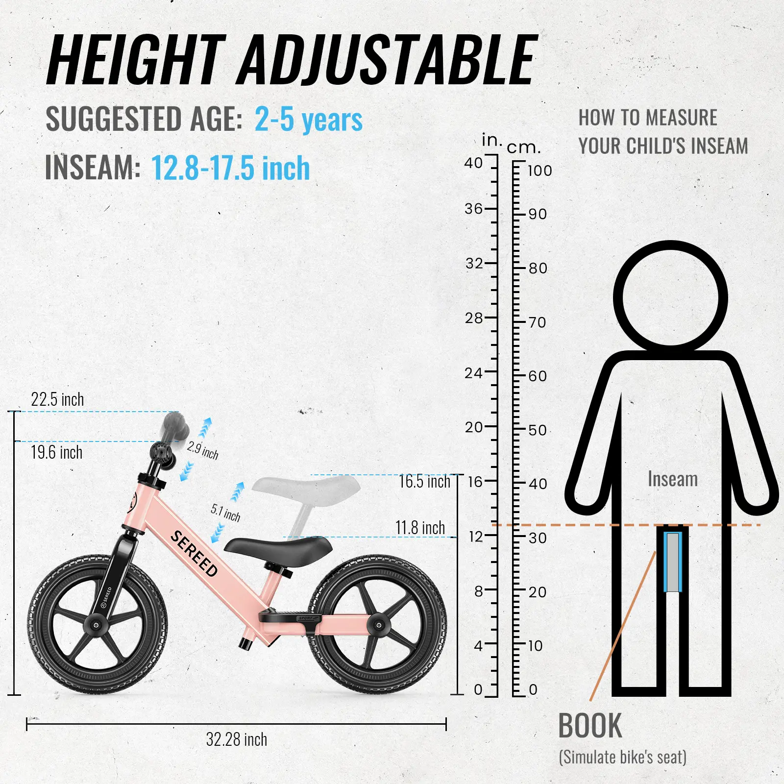 ·STURDY AND SAFE- What you think for your kids is what SEREED toddler balance bike have. Wide and tough carbon steel frame, supports up to 110 lbs, safe footrest pad, rubber grips, soft saddle and a 11.8 inch starting seat height, let your little one enjoy cycling at an early age!