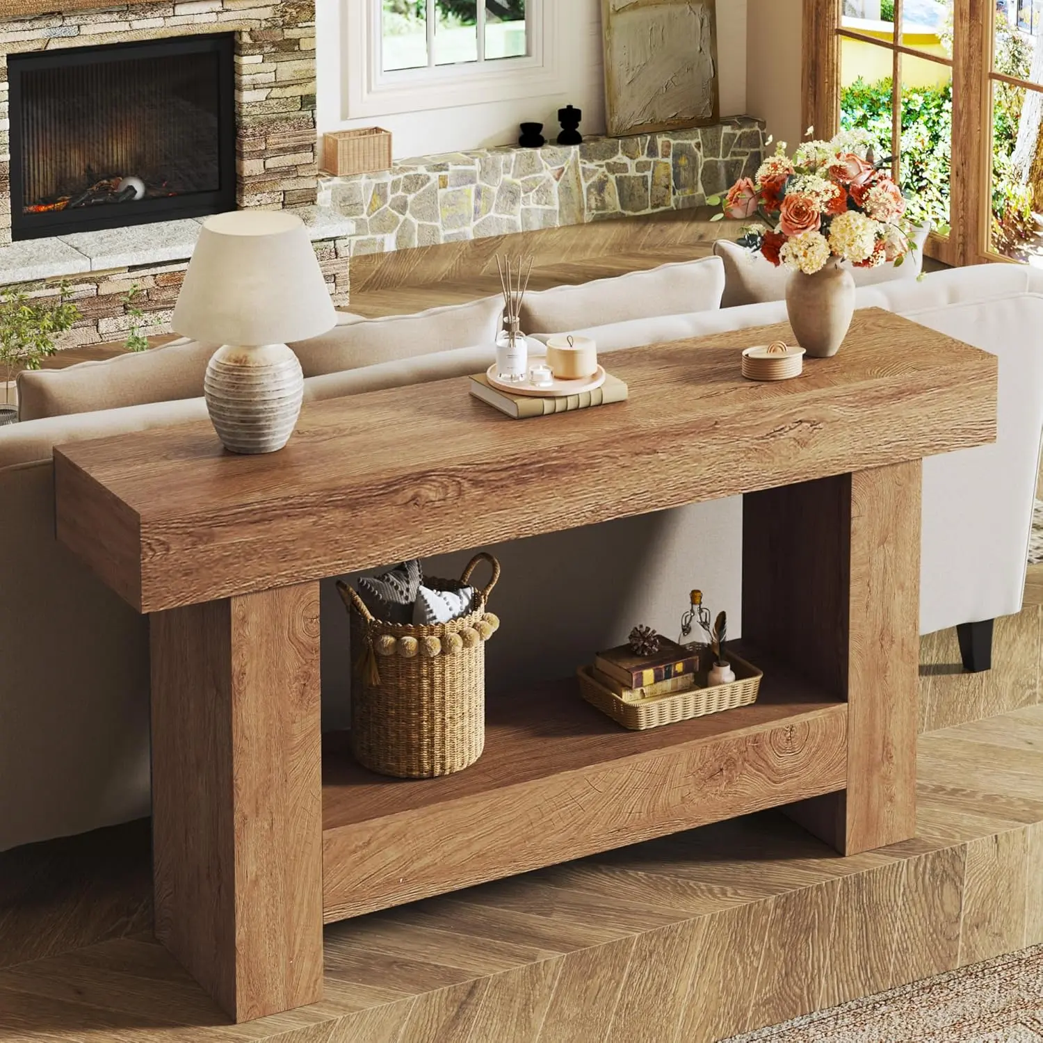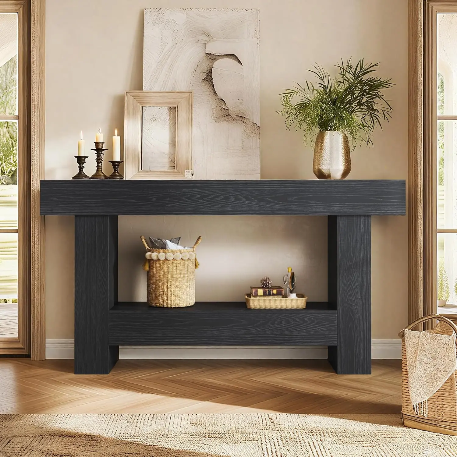 ·Farmhouse Entryway Table: Drawing inspiration from classic farmhouse aesthetics, this narrow console table boasts simple yet striking lines that highlight its natural wood grain patterns, exudes a warm and welcoming feel, perfect for any entryway or living space