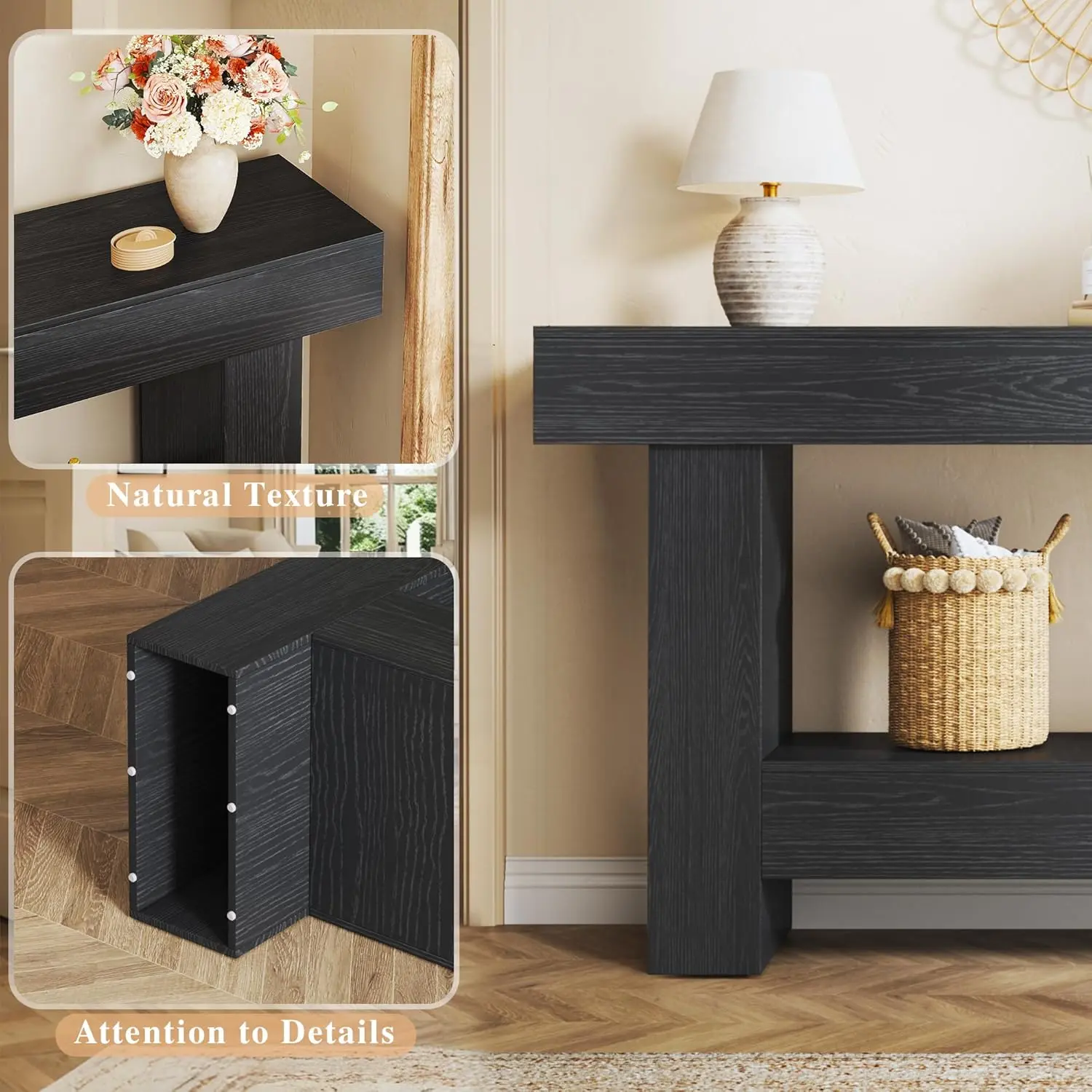 ·Sturdy Structure: Featuring robust wooden legs and an enduring wooden construction, The console tables for entryway is equipped with foot pads that ensure stability and prevent wobbling
