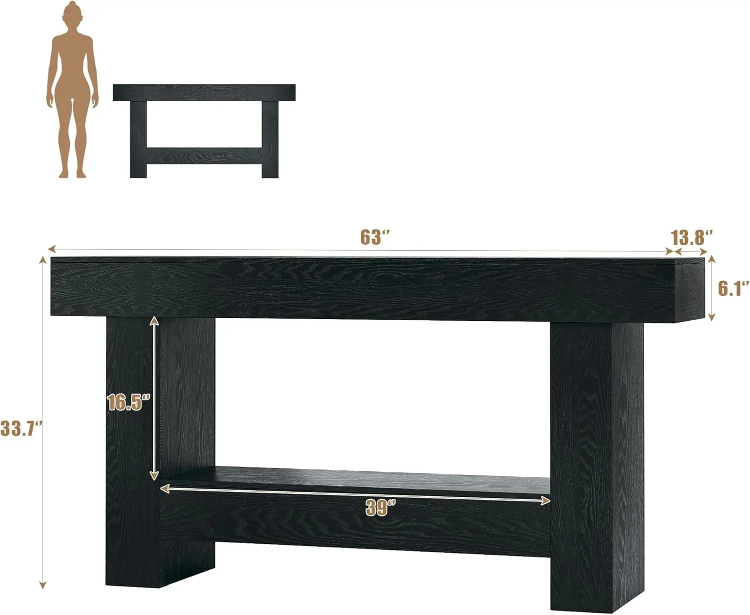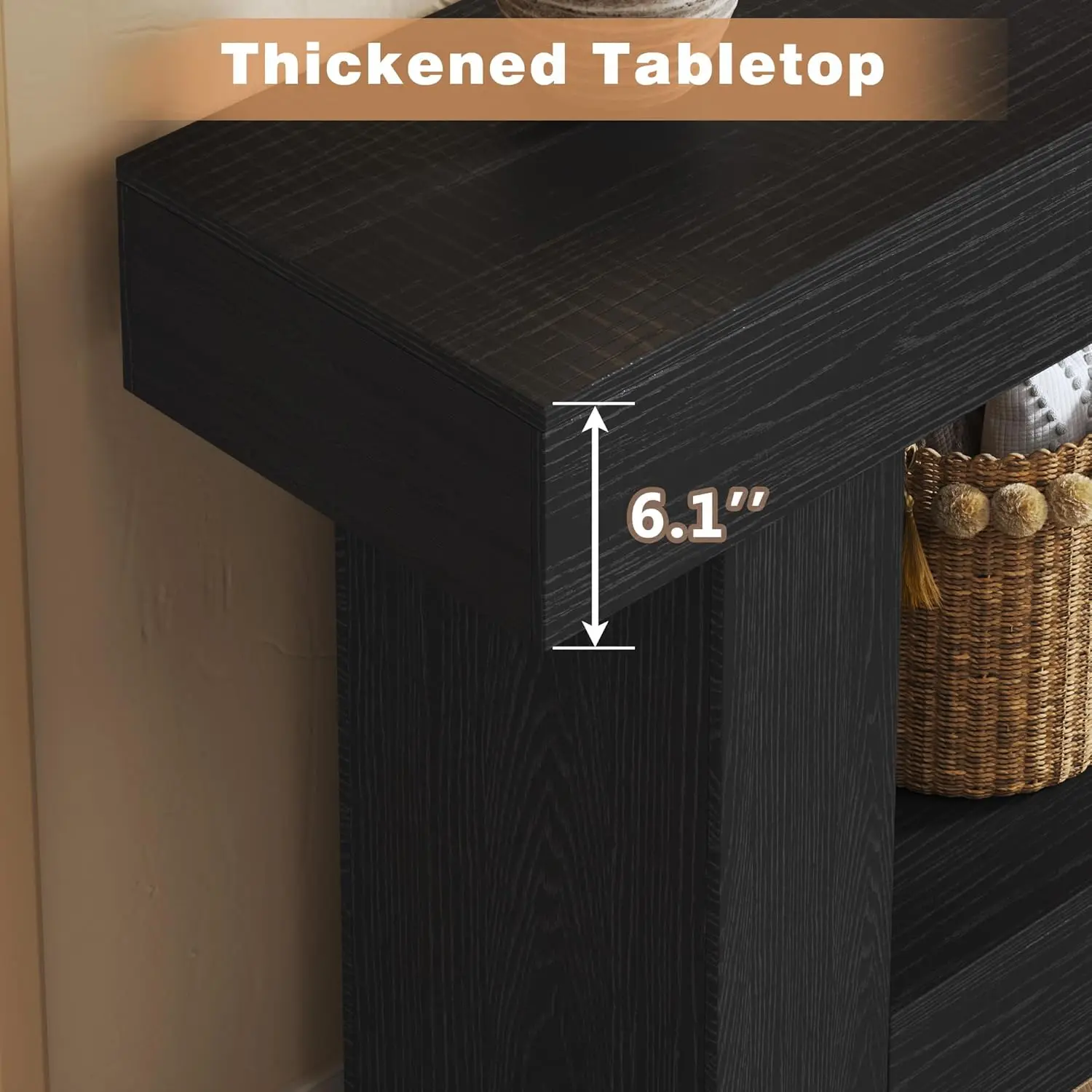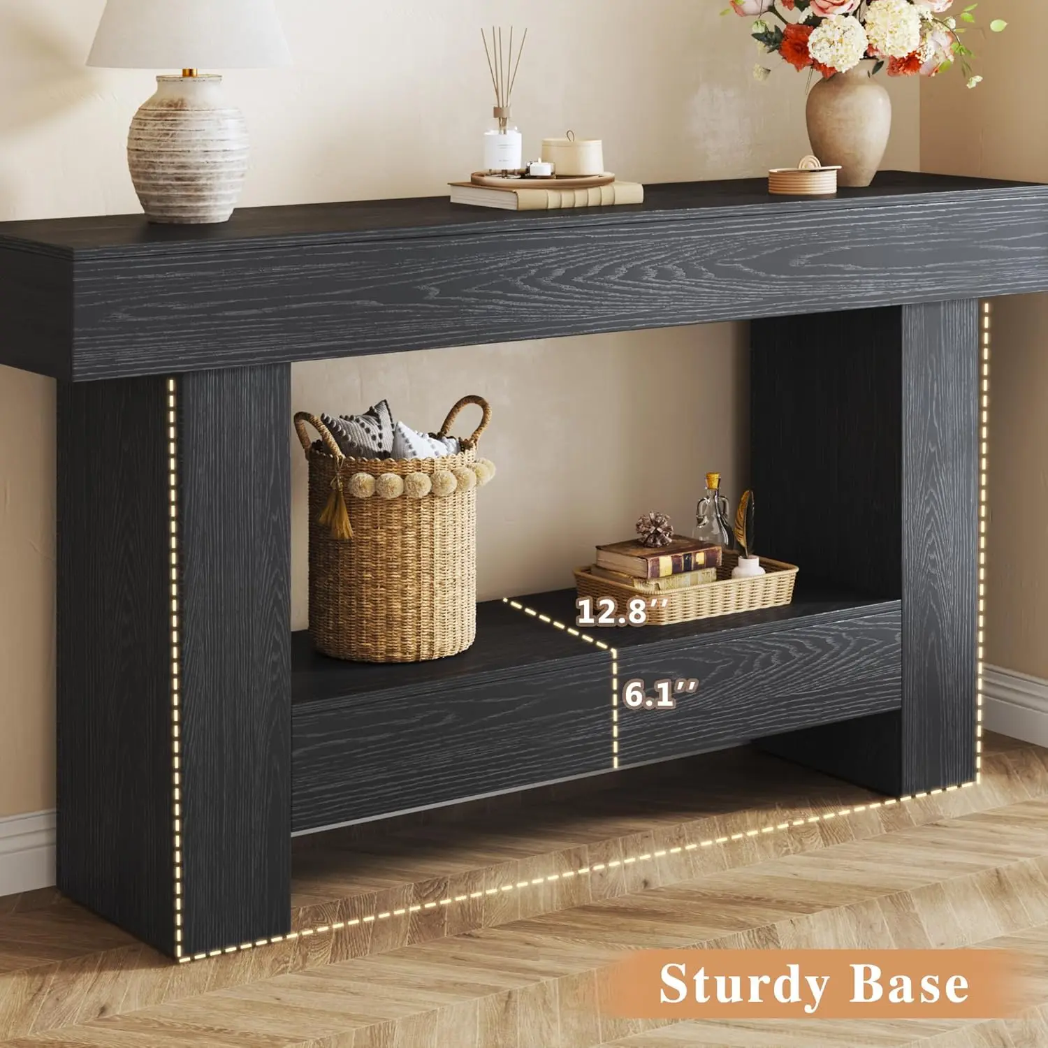 ·Ultra Long Console Table: Measuring 63 inches in length, this entryway table provide an extra large storage space to house and display your miscellaneous and decor items. There is a storage area under the sofa table to place some items