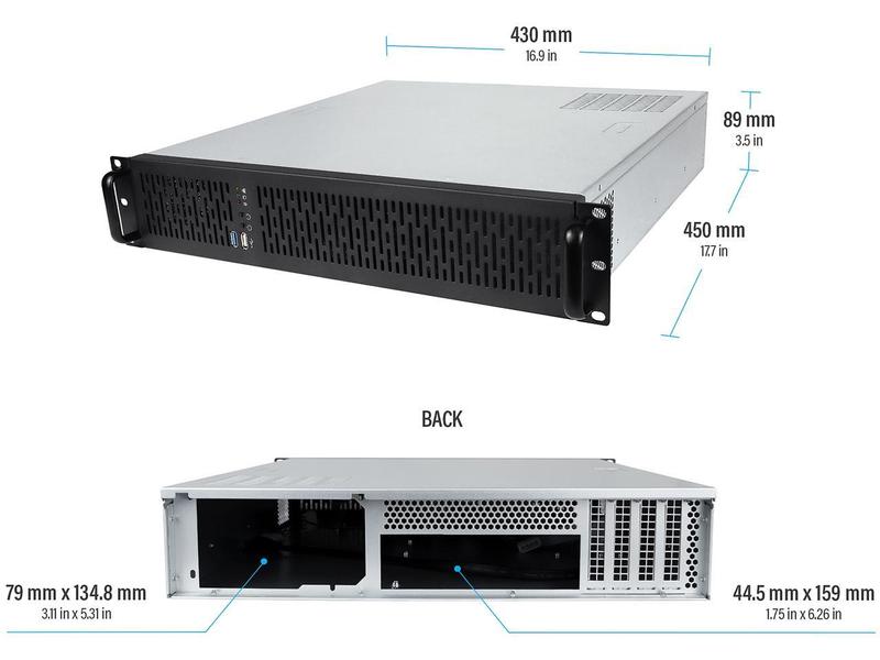 Rosewill RSV-Z2800U 2U Server Chassis Rackmount Case, 4x 3.5" Bays, 2x 2.5" Devices, Micro-ATX Compatible, Up to 3x80mm Fans, 1x USB3.0, 1x USB2.0, Silver/Black