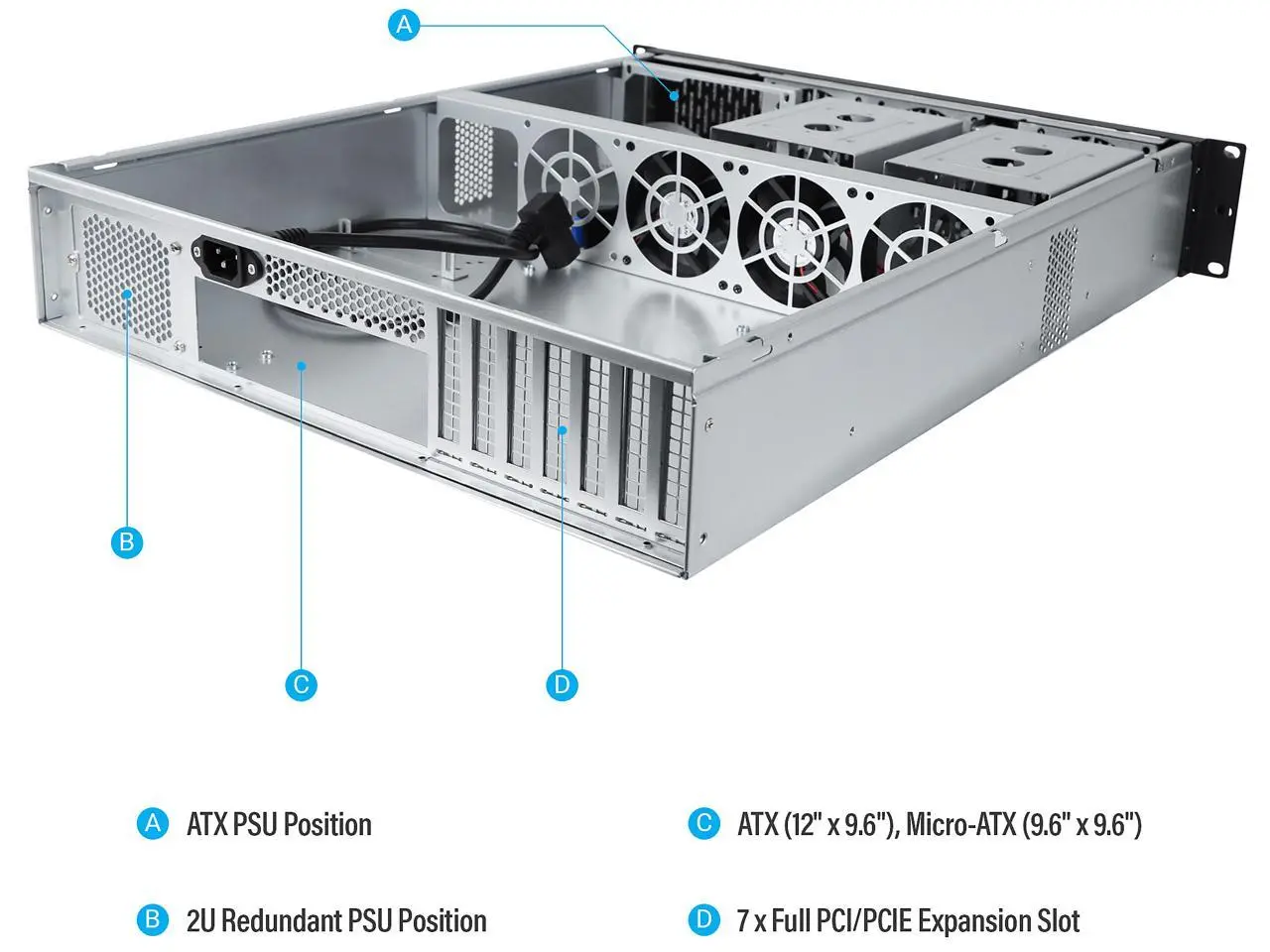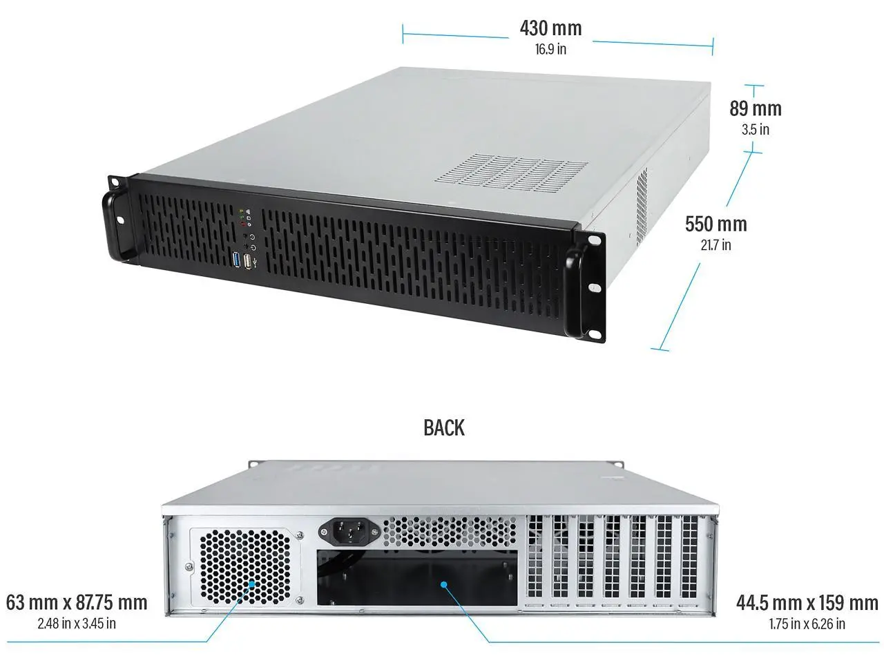 Rosewill RSV-Z2850U 2U Server Chassis Rackmount Case, 4x 3.5" Bays, 2x 2.5" Devices, ATX Compatible, Up to 4x 80mm Fans, 1x USB 3.0, 1x USB 2.0, Silver/Black