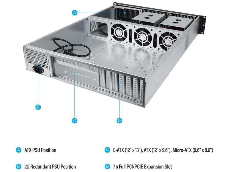 Rosewill RSV-Z2900U 2U Server Chassis Rackmount Case, 4x 3.5" Bays, 2x 2.5" Devices, E-ATX Compatible, 3x 80mm Fans, 1x USB 3.0, 1x USB 2.0, Silver/Black