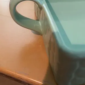 This is a very beautiful piece. I may buy another. The color is gorgeous and the sideways handle makes it different.