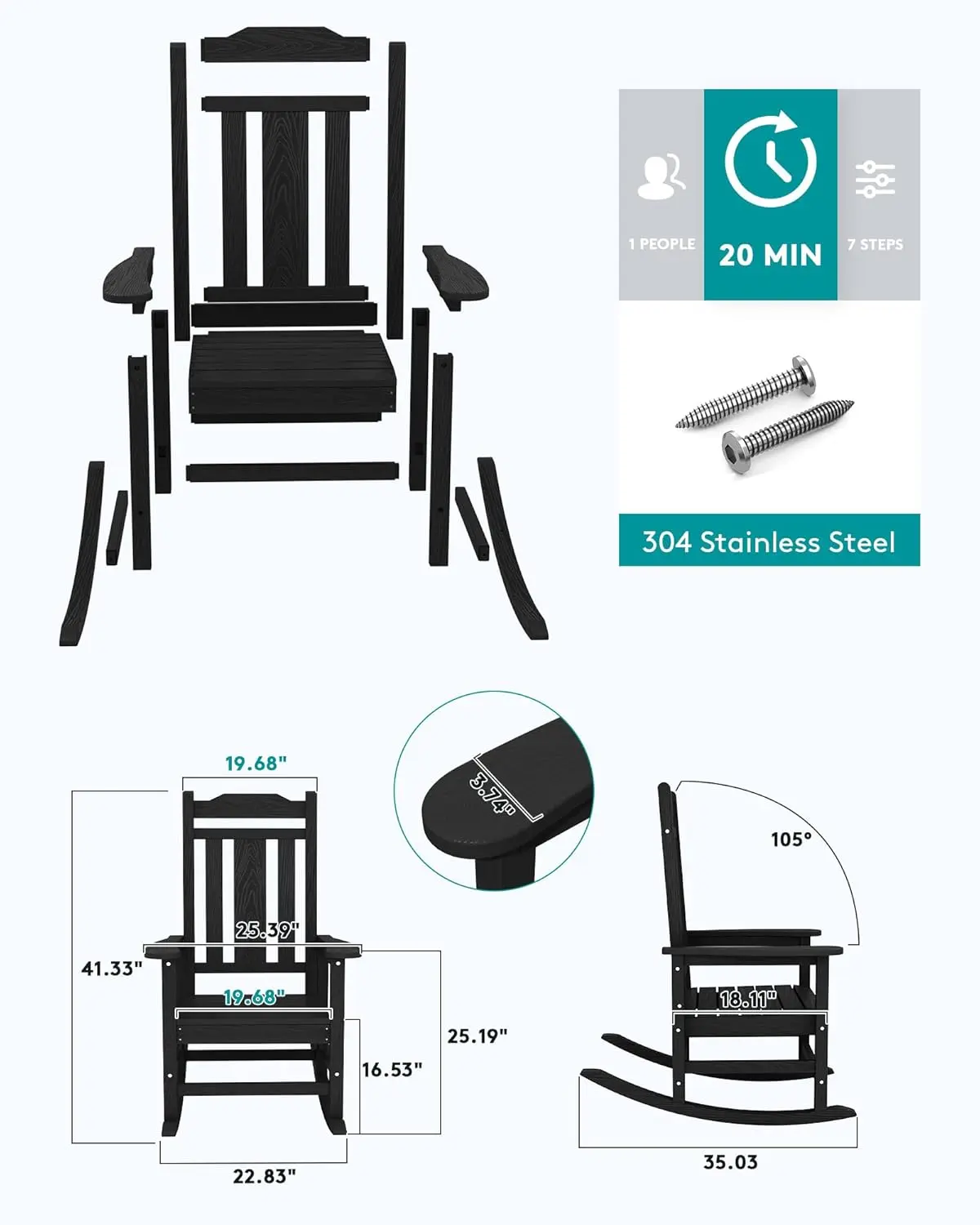 ·【30-Mins Installation】Partial installation required. Making your patio rocking chair in 30 MINS. Coming with hardware set and instruction, the installation will be a simple process. Instructional video is provided on our website. (ATTN: Do Not Screw The Screws Tightly Before Finishing).