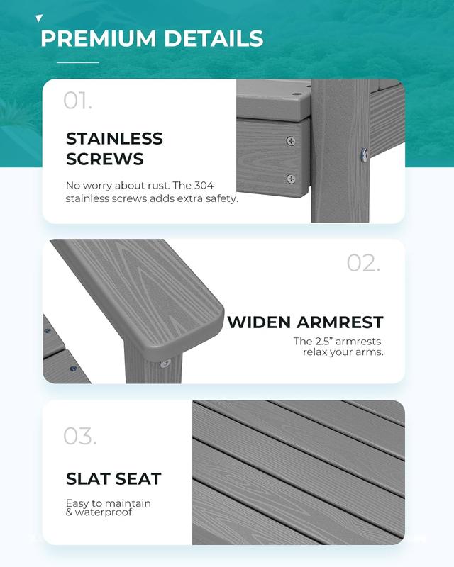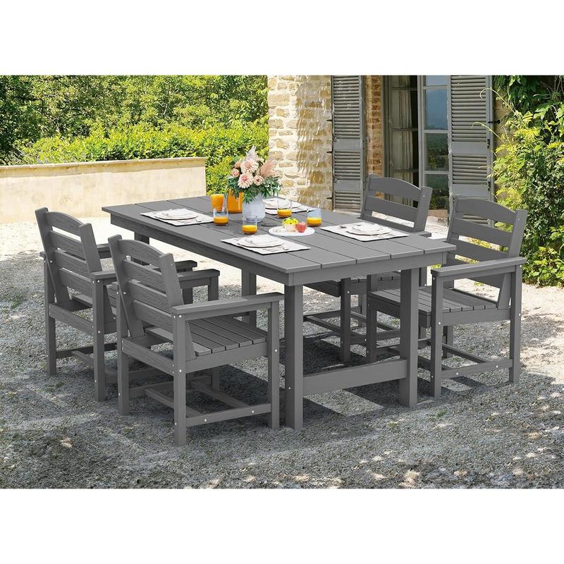 ·【Low Maintenance】HDPE dining chairs required low maintenance. Unlike steel dining chairs that may rust, the patio dining table and chairs are easy to clean with just soap and water, requiring minimal effort to keep them looking fresh.