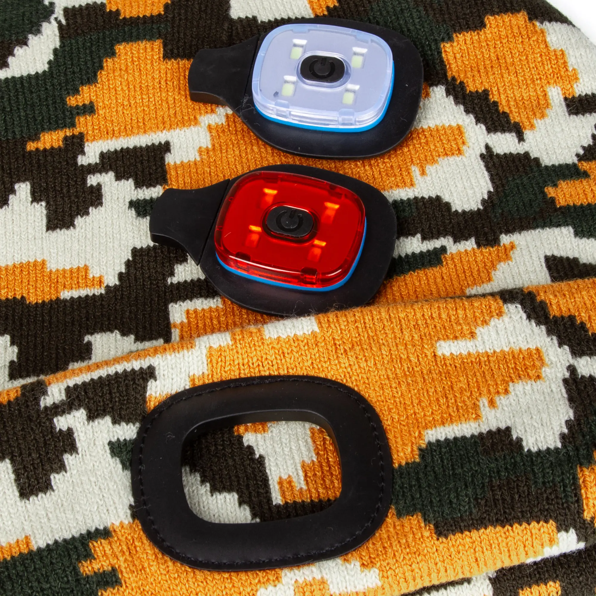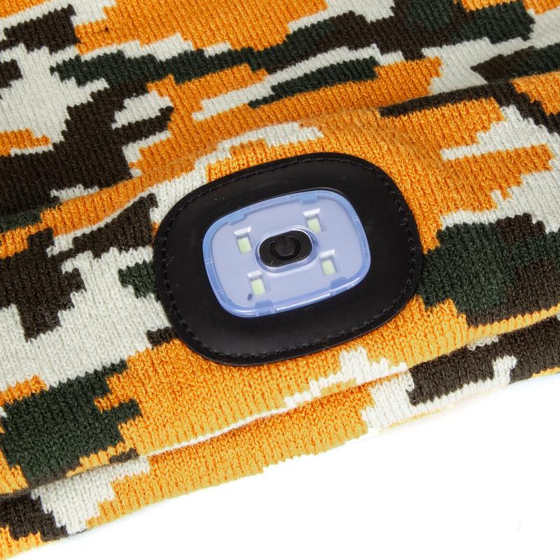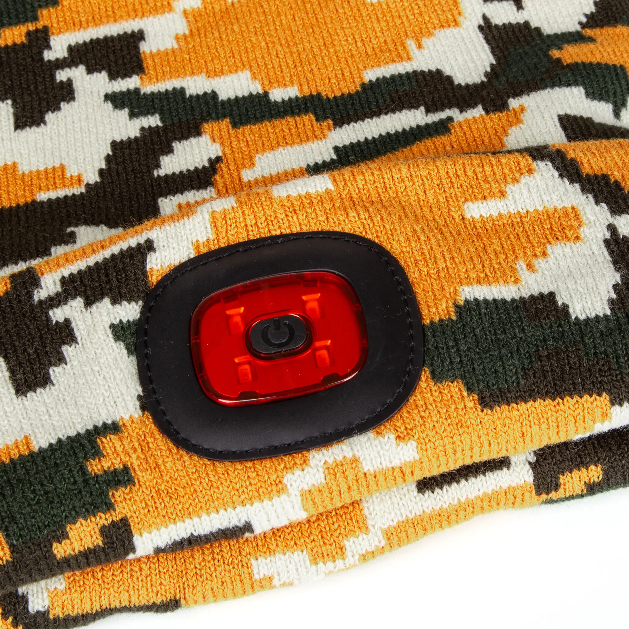 This LED Beanie Hat offers 5 styles: Camo & Solid. Ideal for hiking, camping, and night walks. The hands-free lighted knit cap ensures you stay visible and safe. Available in Black, Gray, Pink, Green Camo, and Orange Camo. 🌿