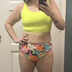 Very comfortable and love how high waisted the bottoms are and the fully coverage. Great quality and fast delivery. Love the bright colors and the material.