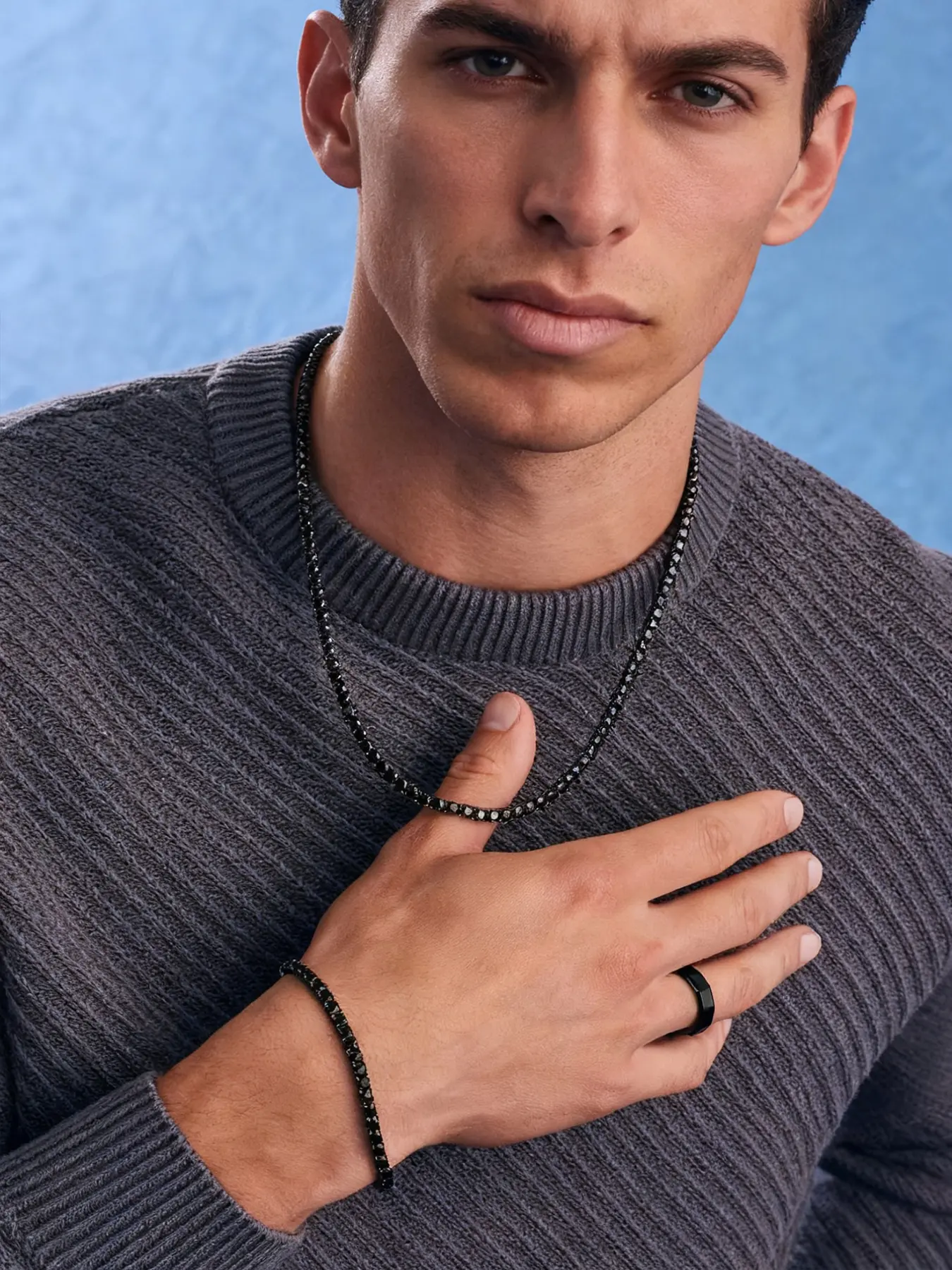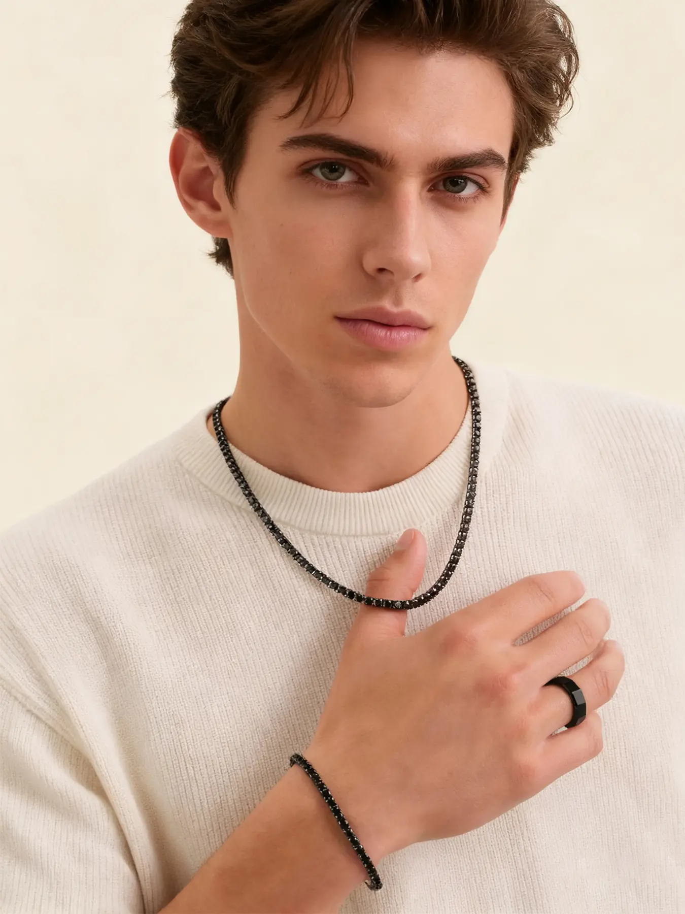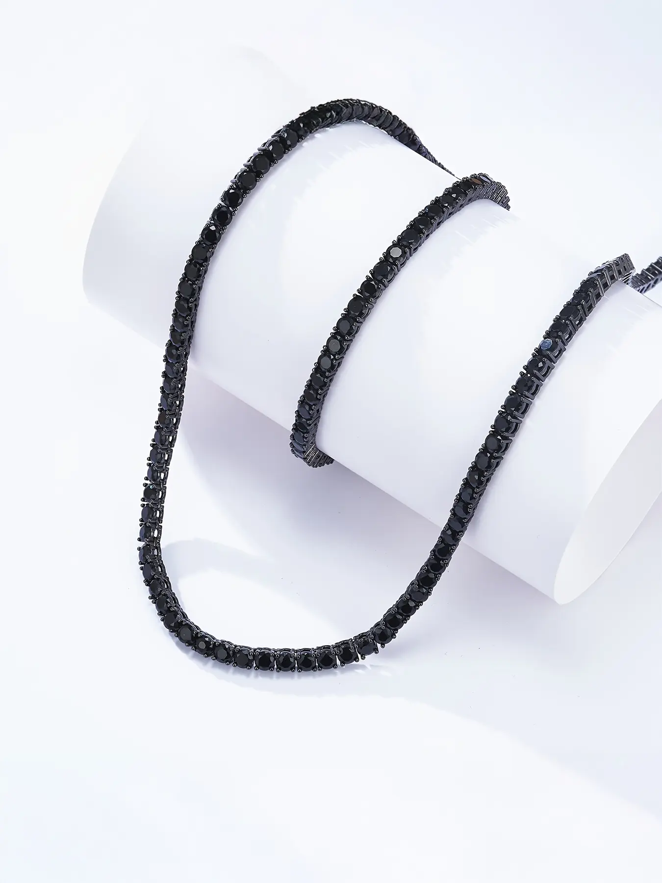 【Hip Hop Charm】: Featuring a 4MM black tennis chain, this set embodies a bold hip hop influence suitable for everyday wear.