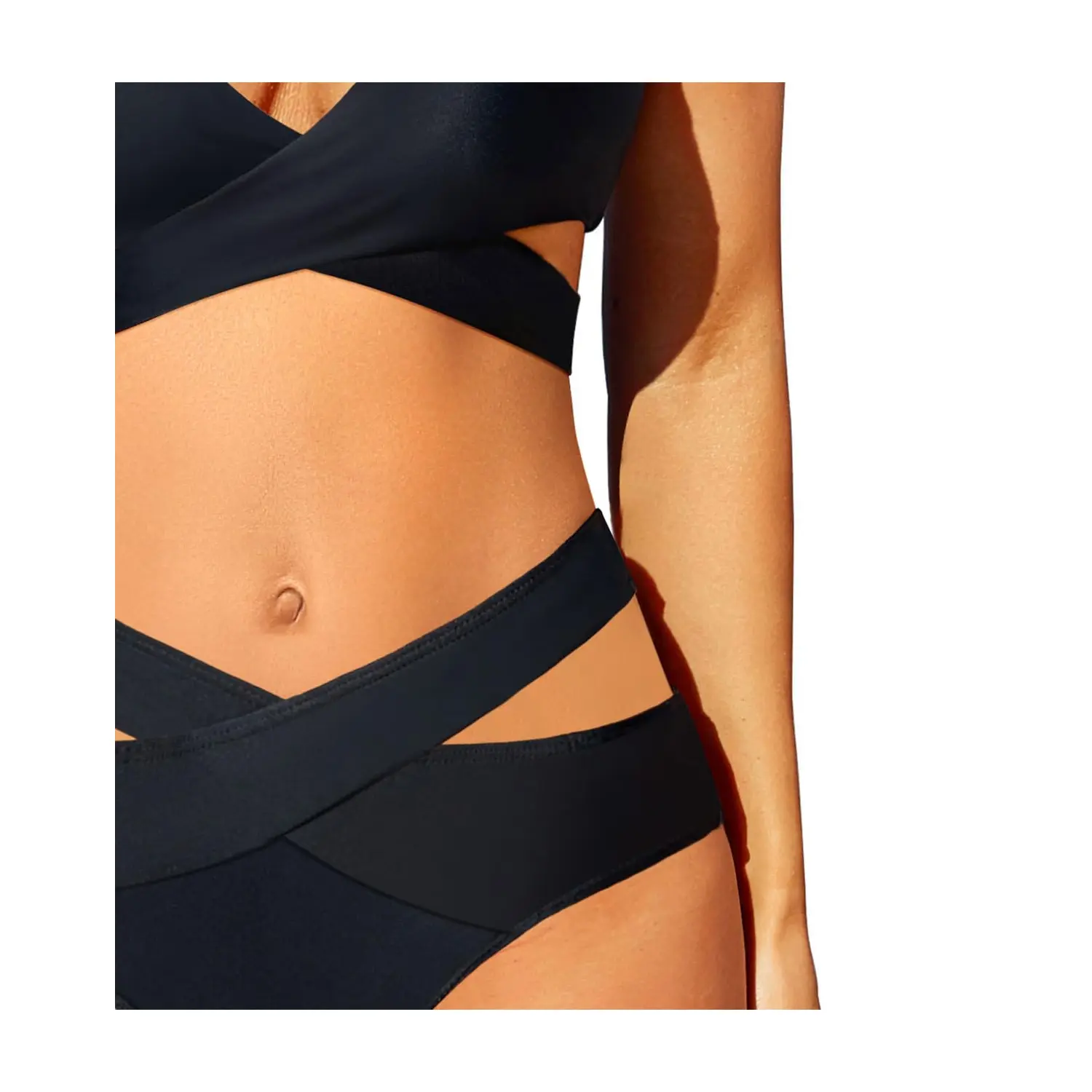 ·High Waisted Bikini Bottoms: The crossed V-shaped waist and high waist design will define your waistline, giving you a slimmer look. Additionally, the high legs and cut-out design make the swimsuit more alluring, accentuating your body's curves and making you look more flattering.