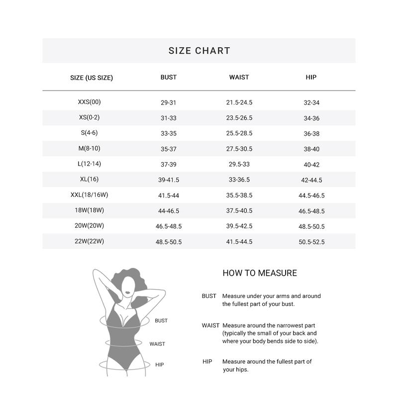 ·Size: To achieve the perfect fit, please first take accurate measurements and then consult our size chart, which has been carefully crafted to suit our swimwear designs. Sizes available are: XXS (US 0-0), XS (US 0-2), S (US 4-6), M (US 8-10), L (US 12-14), XL (US 16), XXL (US 18), 18W (US 18W).