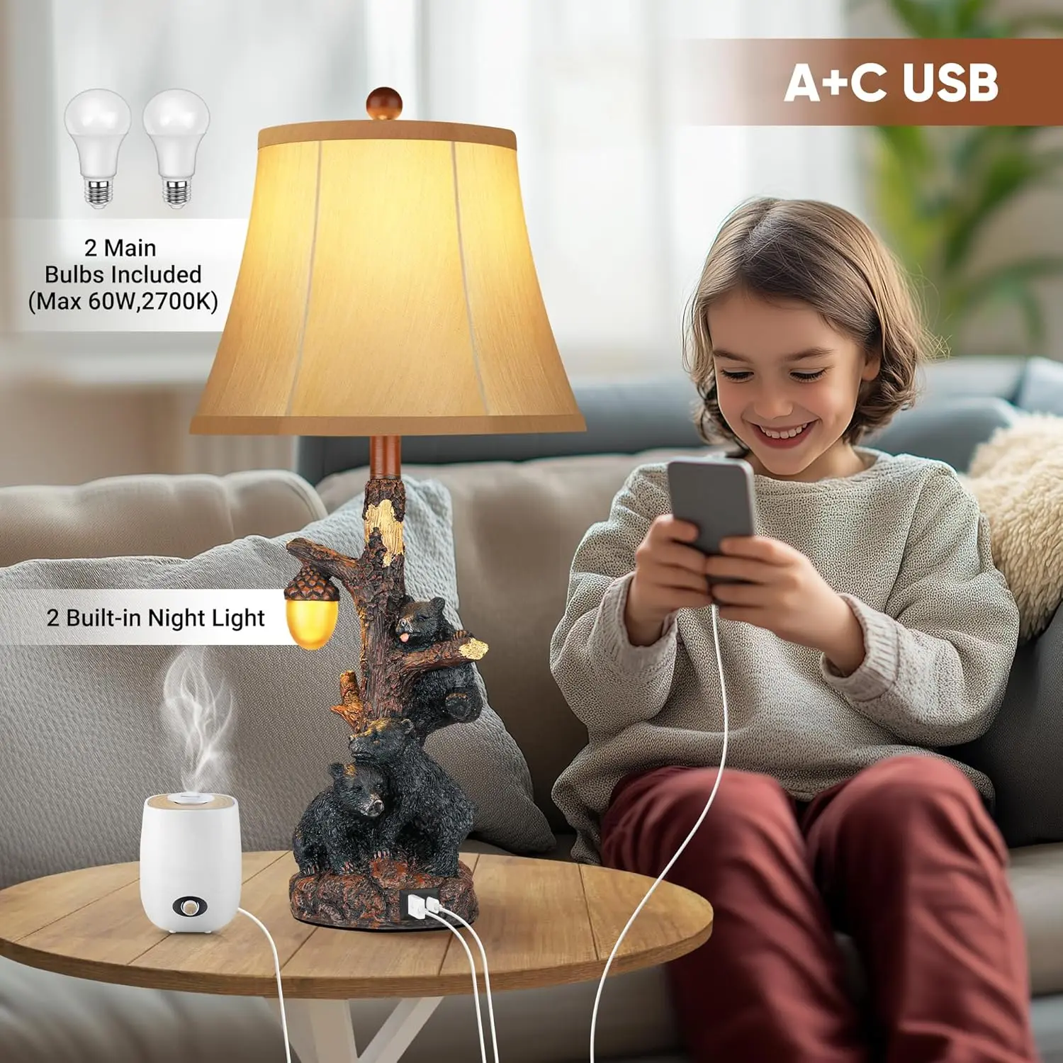 ·Built-in Type A+C USB ports:Our wildlife lamps allow you to easily charge your smartphones, tablets, or other devices directly from the lamp itself. This eliminates the need to search for an available power outlet or use bulky charging adapters.It's a hassle-free solution that ensures your devices are always within reach and powered up.Whether you have an older device that uses USB-A or newer devices that utilize USB-C, these lamps have got you covered.