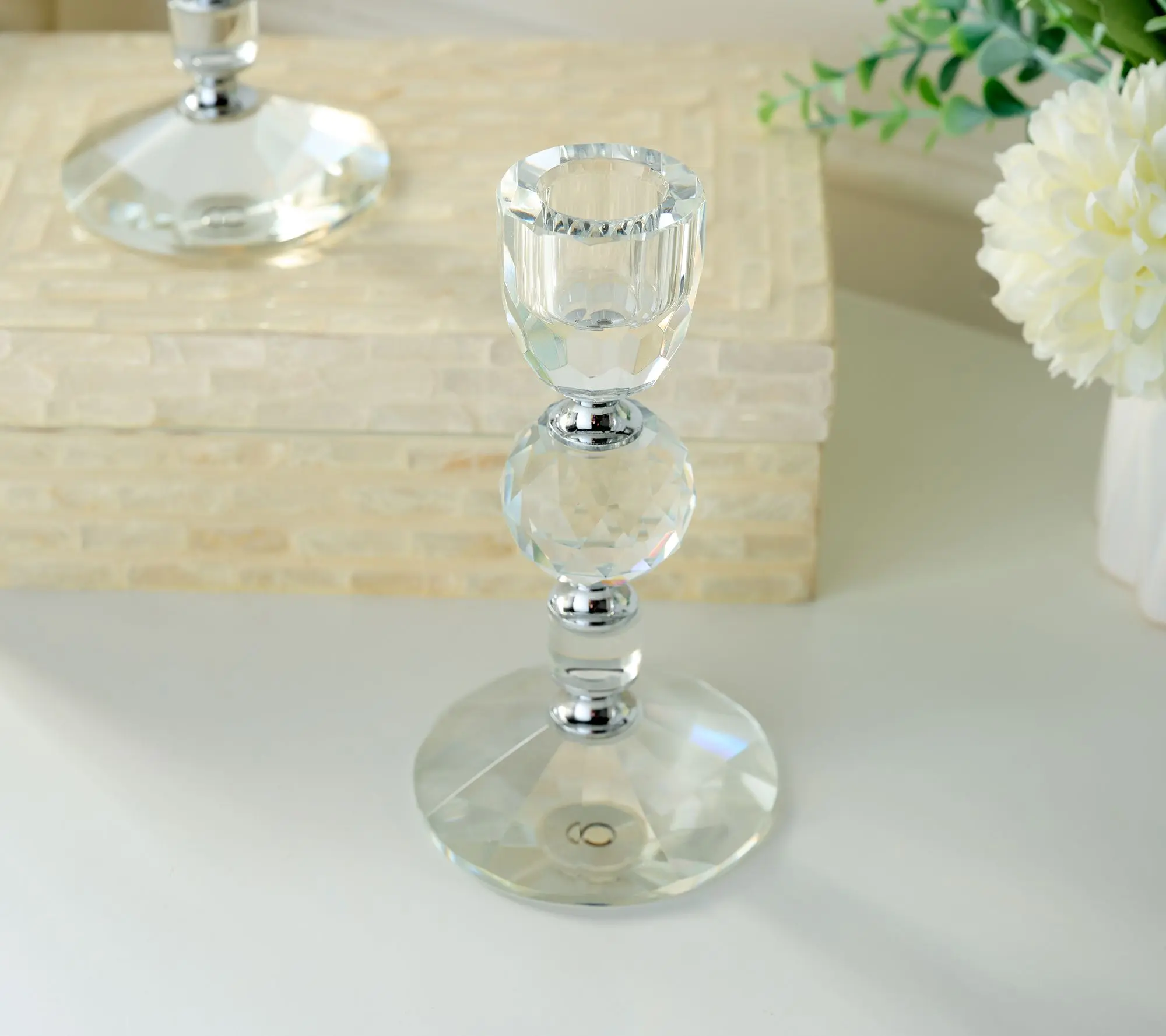 ·Includes two faceted glass taper holders