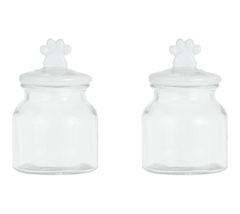 Storing dog treats just got a fun upgrade with this set of two Cosmopawliton dog treat jars. With a playful paw sitting atop each ceramic lid, these glass canisters keep your pup's favorite snacks at the ready -- whether you keep them on the kitchen counter, shelf, or by the door for quick rewards during training time. From 10 Strawberry Street.