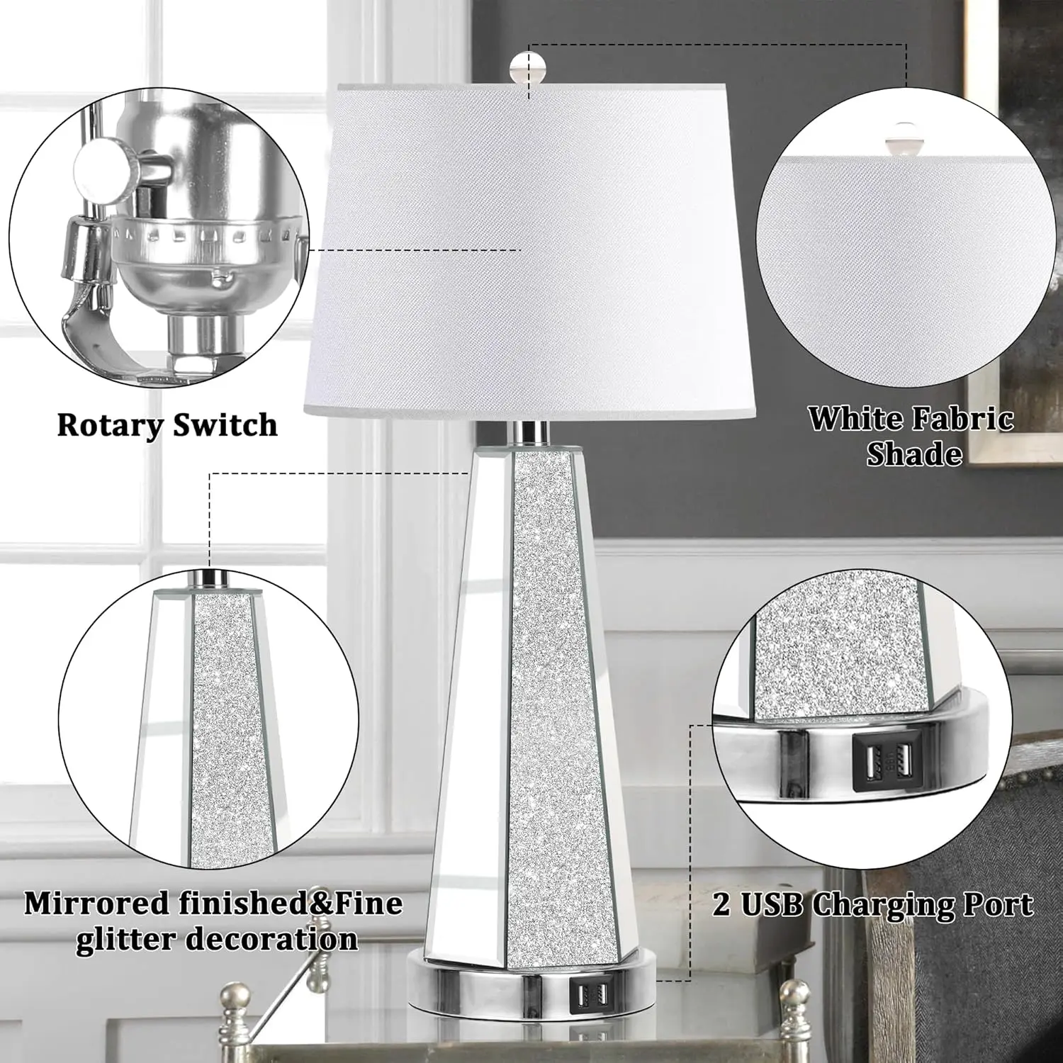 ·Built-in 2 USB ports:The two glamorous lamp features two conveniently located USB ports right on its base.These ports are compatible with most electronic devices.No more searching for an extra outlet or USB adapter-simply plug in your device directly into the lamp and enjoy easy access to charging.