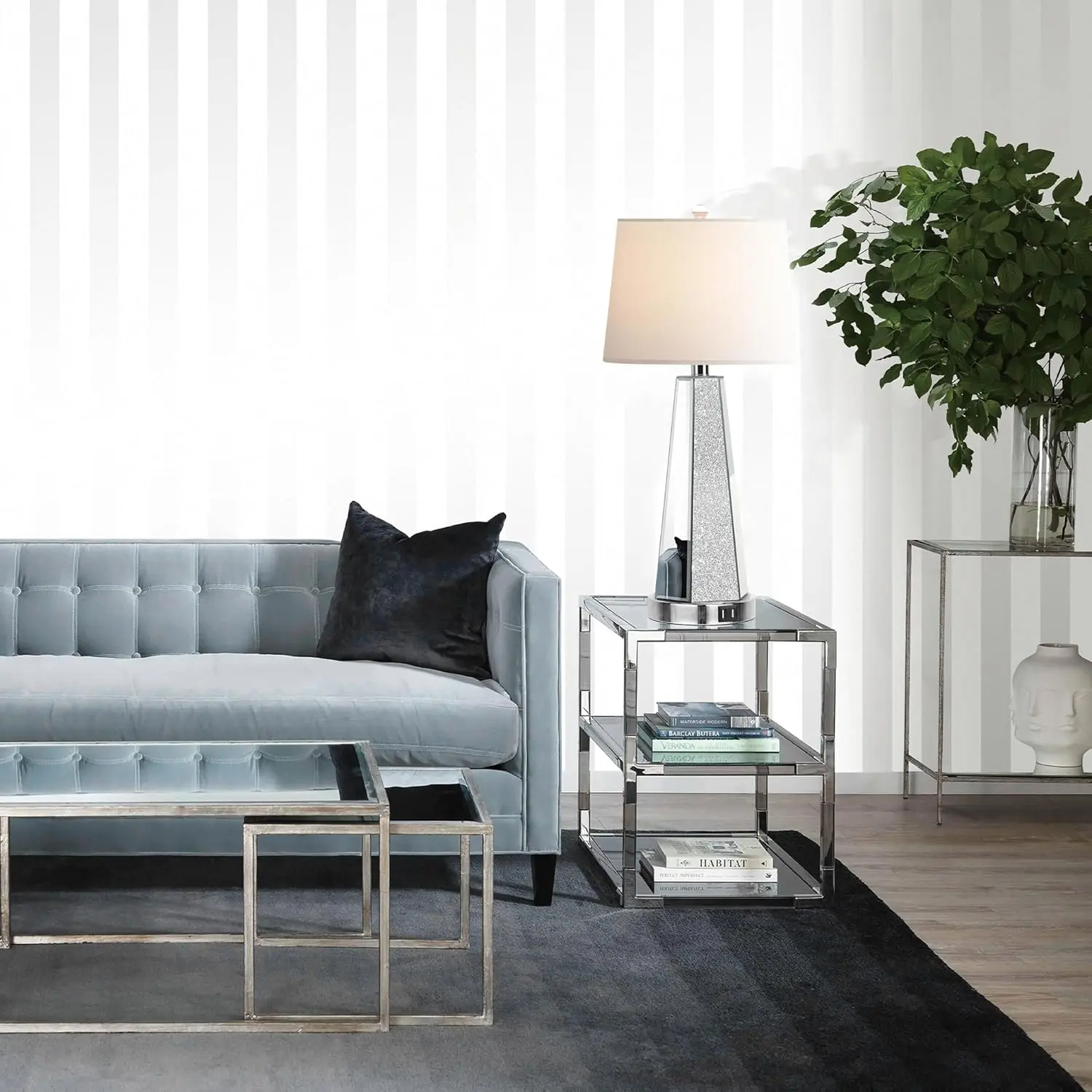 ·Enhancing Interior Spaces:Mirrored table lamps have the power to transform the atmosphere of a room.Placing a mirrored lamp on a bedside table can give your bedroom an instant luxurious feel,creating a serene and elegant mood.Similarly,when used in living rooms or entryways,these tabletop lamps capture attention and infuse a sense of opulence and grandeur.By strategically placing mirrored table lamps,you can highlight specific areas or objects in your space,such as artwork or decorative items.