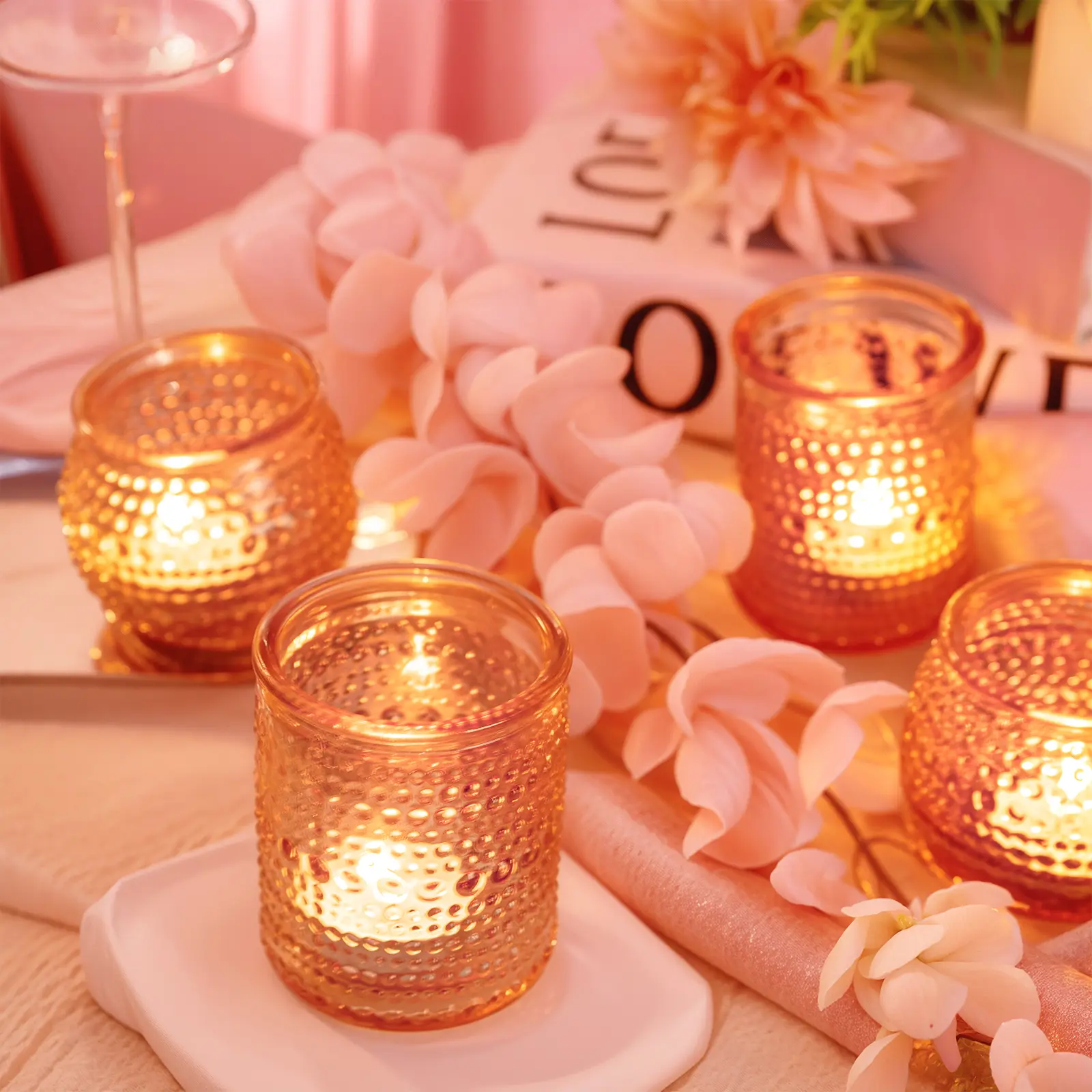 Rubtlamp 24 Pack Pink Votive Candle Holders, Glass Candle Holder for Floating Candle, Tealight Candle Holders for Table Centerpieces