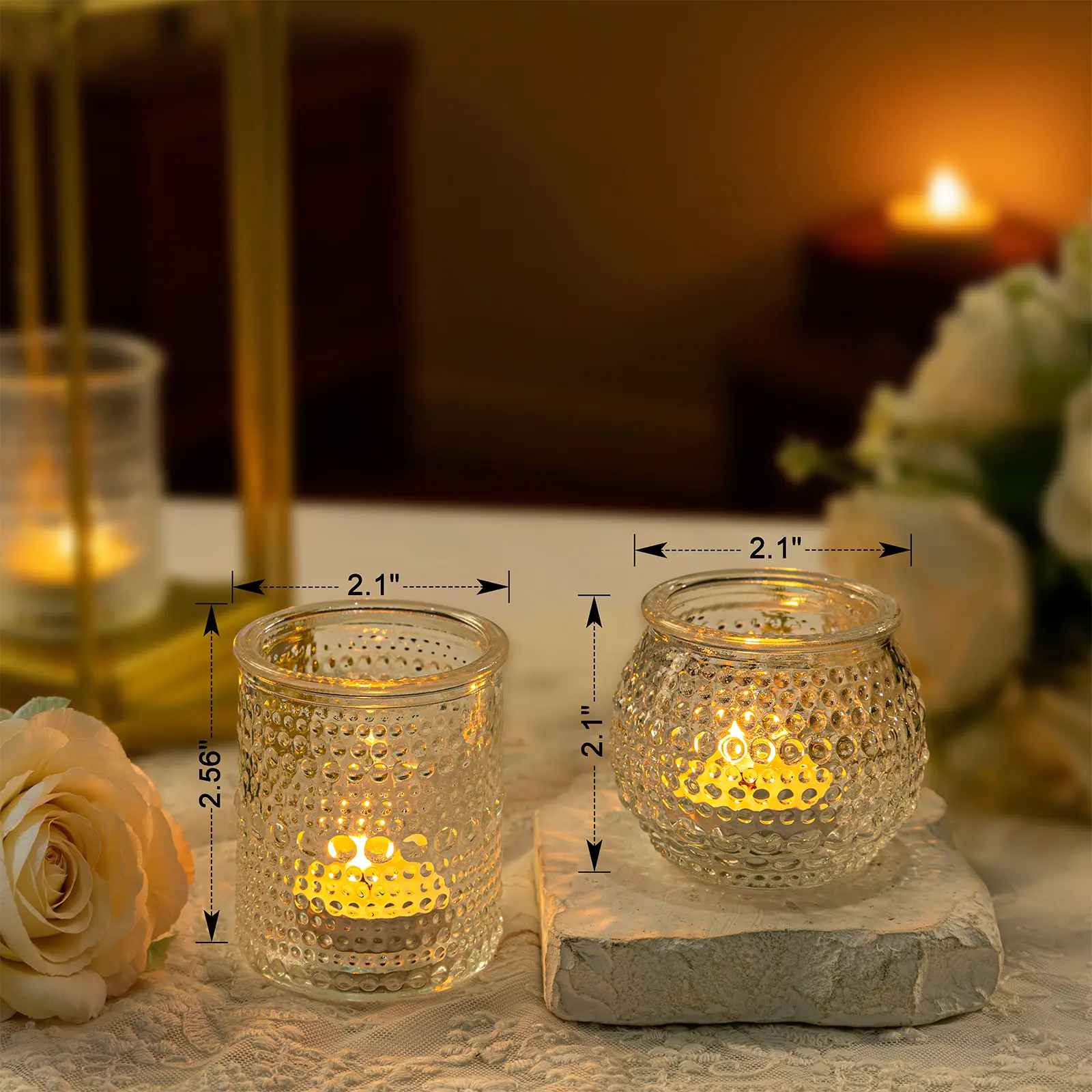 Rubtlamp Amber Votive Candle Holders Set of 24, 12Pack 2.1 * 2.7inch Glass Vintage Candles Holder 12Pack 2.1 * 2.1inch Tea Lights Candle Holders for Table Centerpiece Wedding Decor Home Decoration