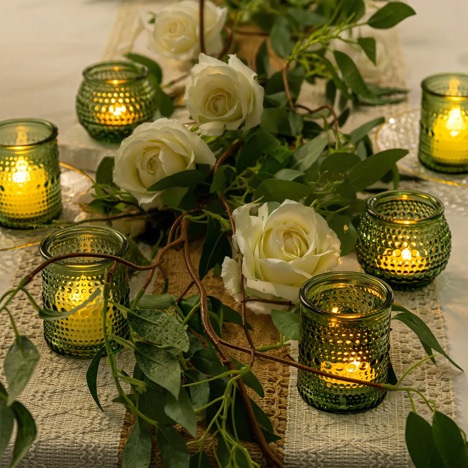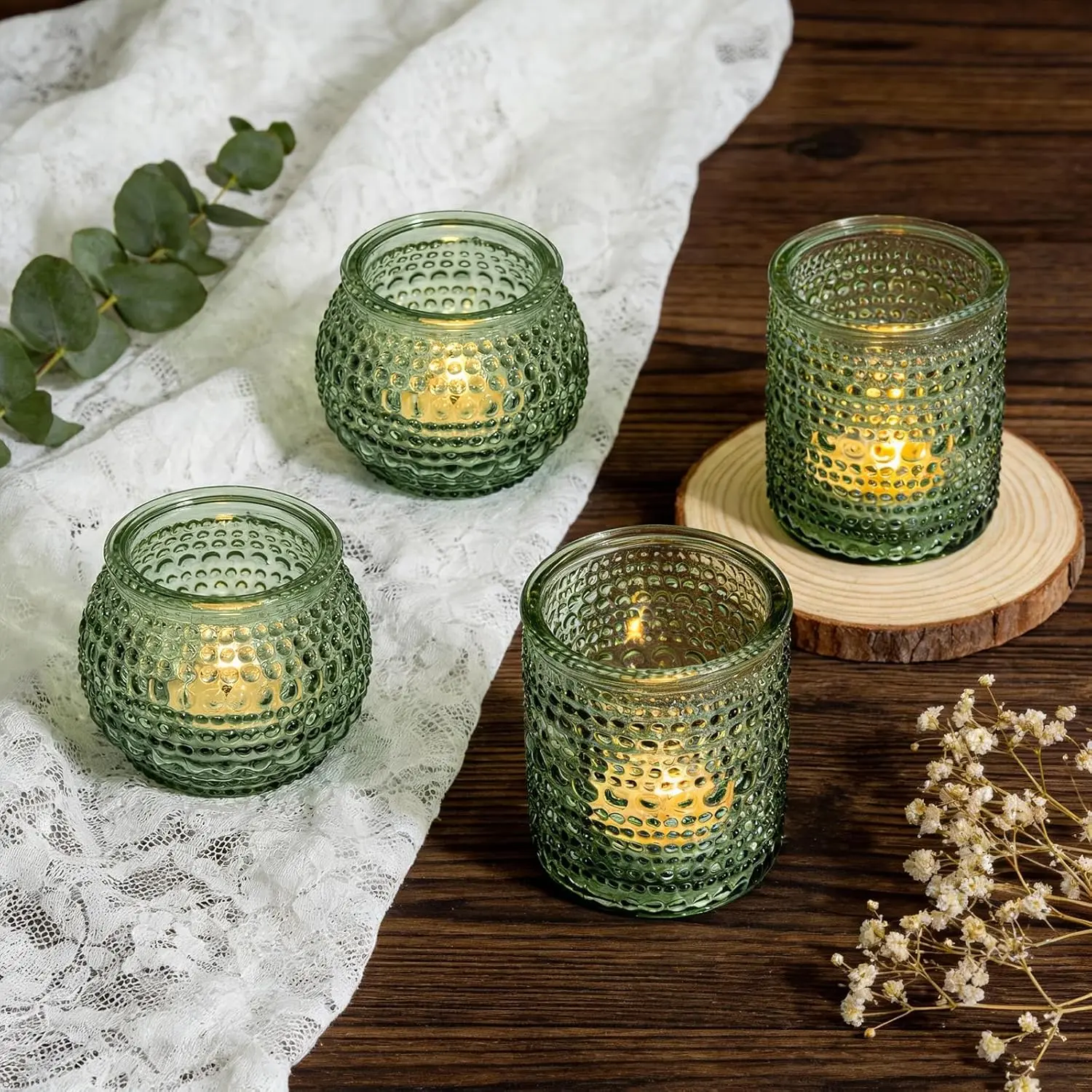 Rubtlamp 24Pack Green Votive & Tea Light Candle Holders with Dot Design, Glass Candle Holder for Table Centerpiece, Wedding, Baby Shower, Home Decorations