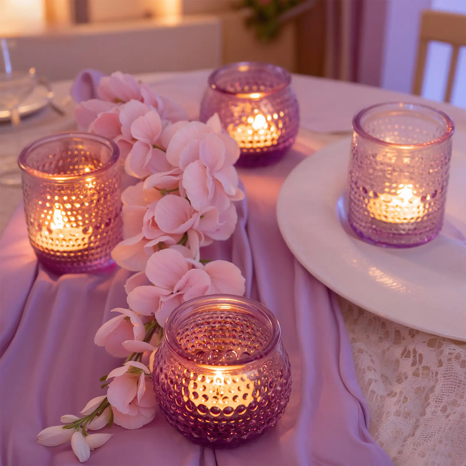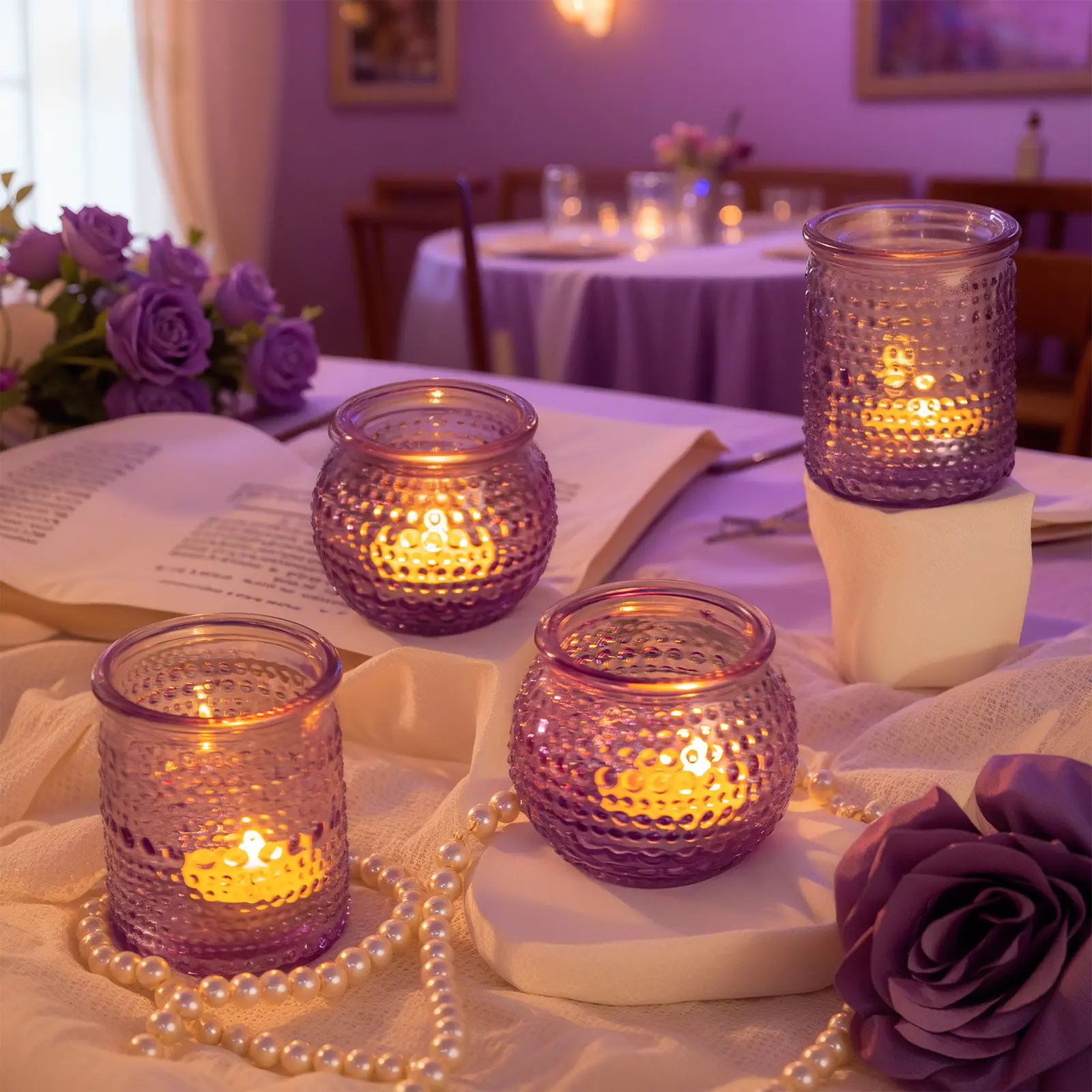 Rubtlamp Purple Votive Candle Holders Set of 24, Glass Candle Holders Bulk for Table Centerpiece, Tea Lights Candle Holder Glass for Wedding Shower, Home Party Decor