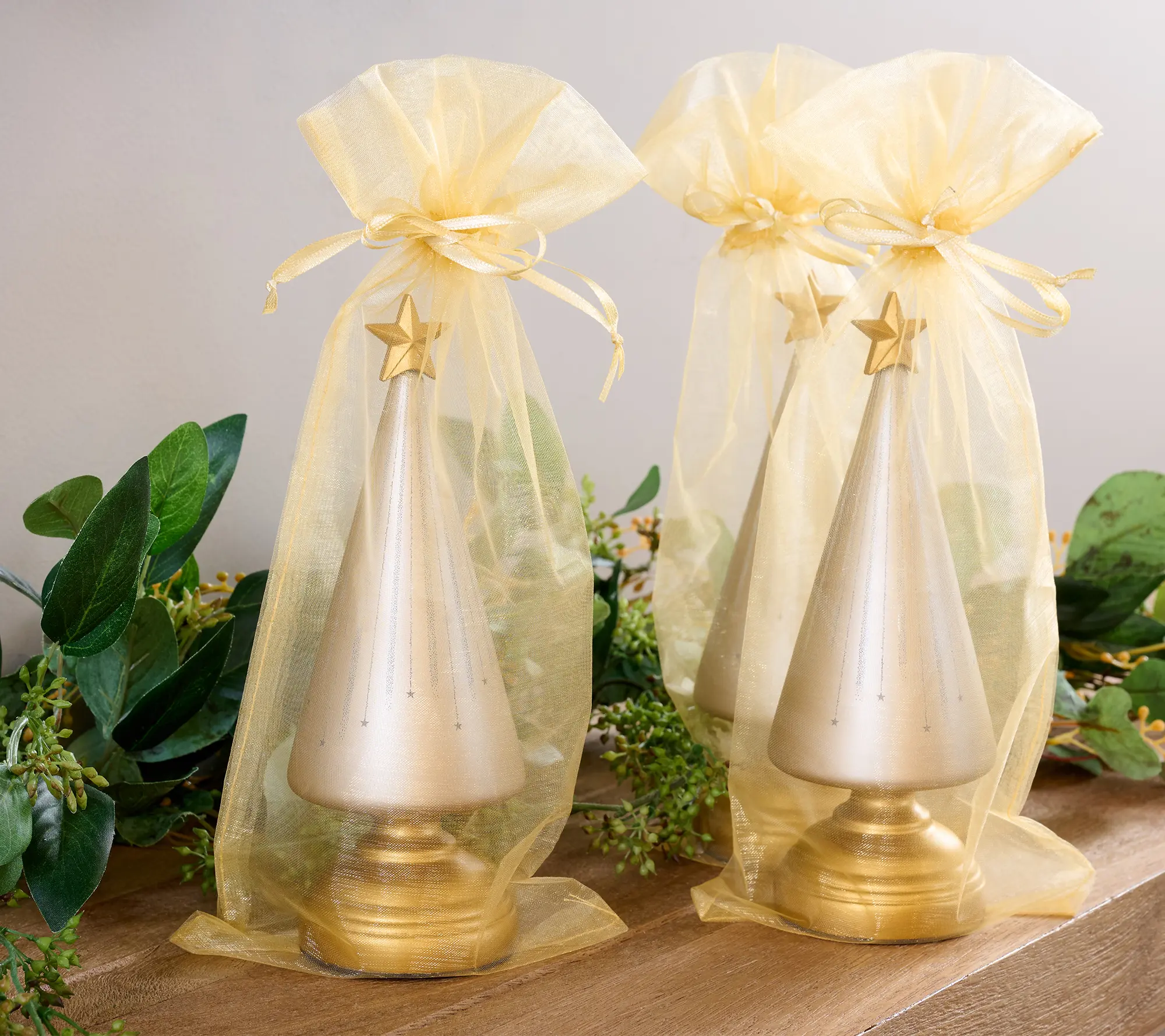 ·Includes three glass trees and three sheer gift bags