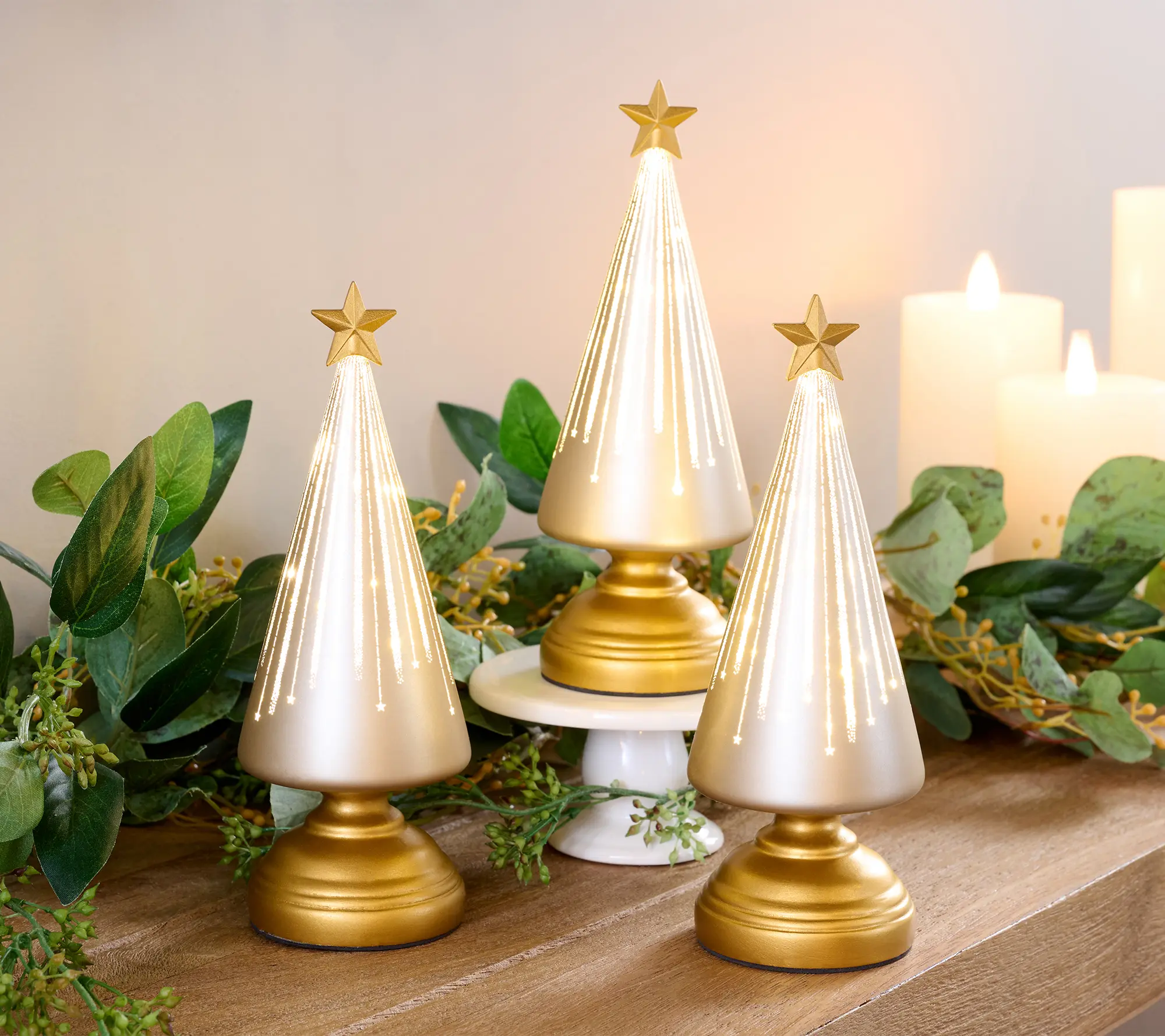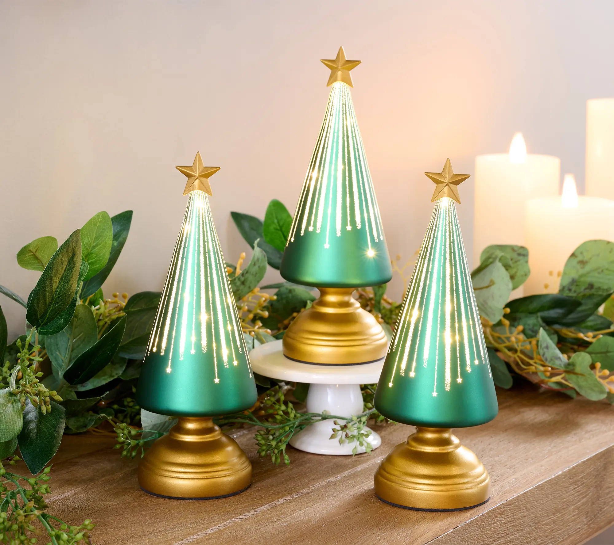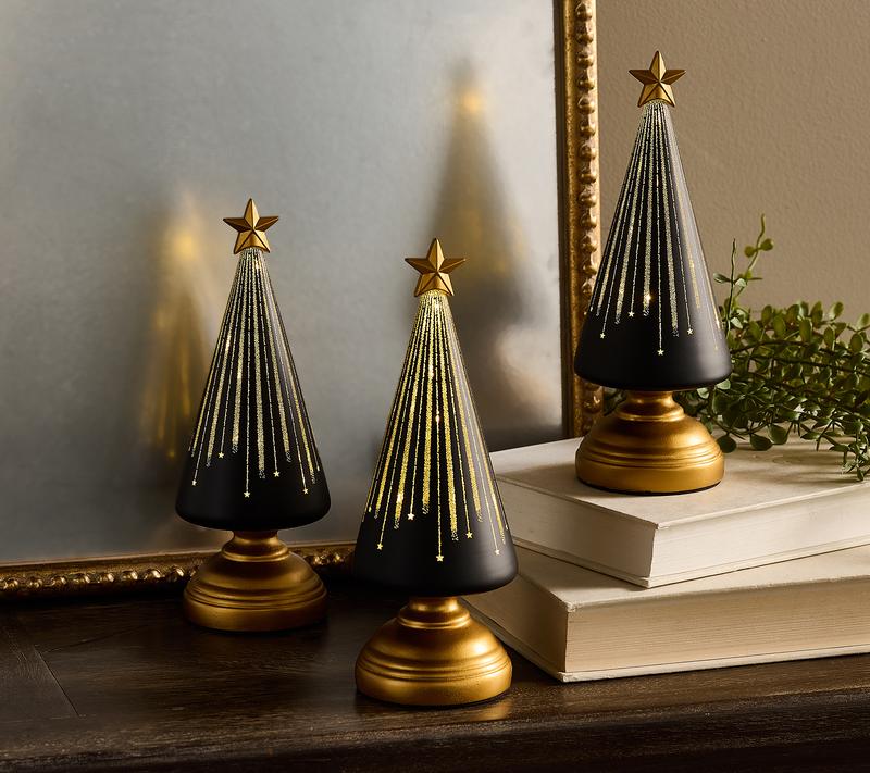 Twinkle, twinkle, little star -- or, in this case, a lotta stars! These gleaming glass trees illuminate with twinkling light, lending a gorgeous glow-up to your holiday home night after silent night. From the Valerie Parr Hill Collection.