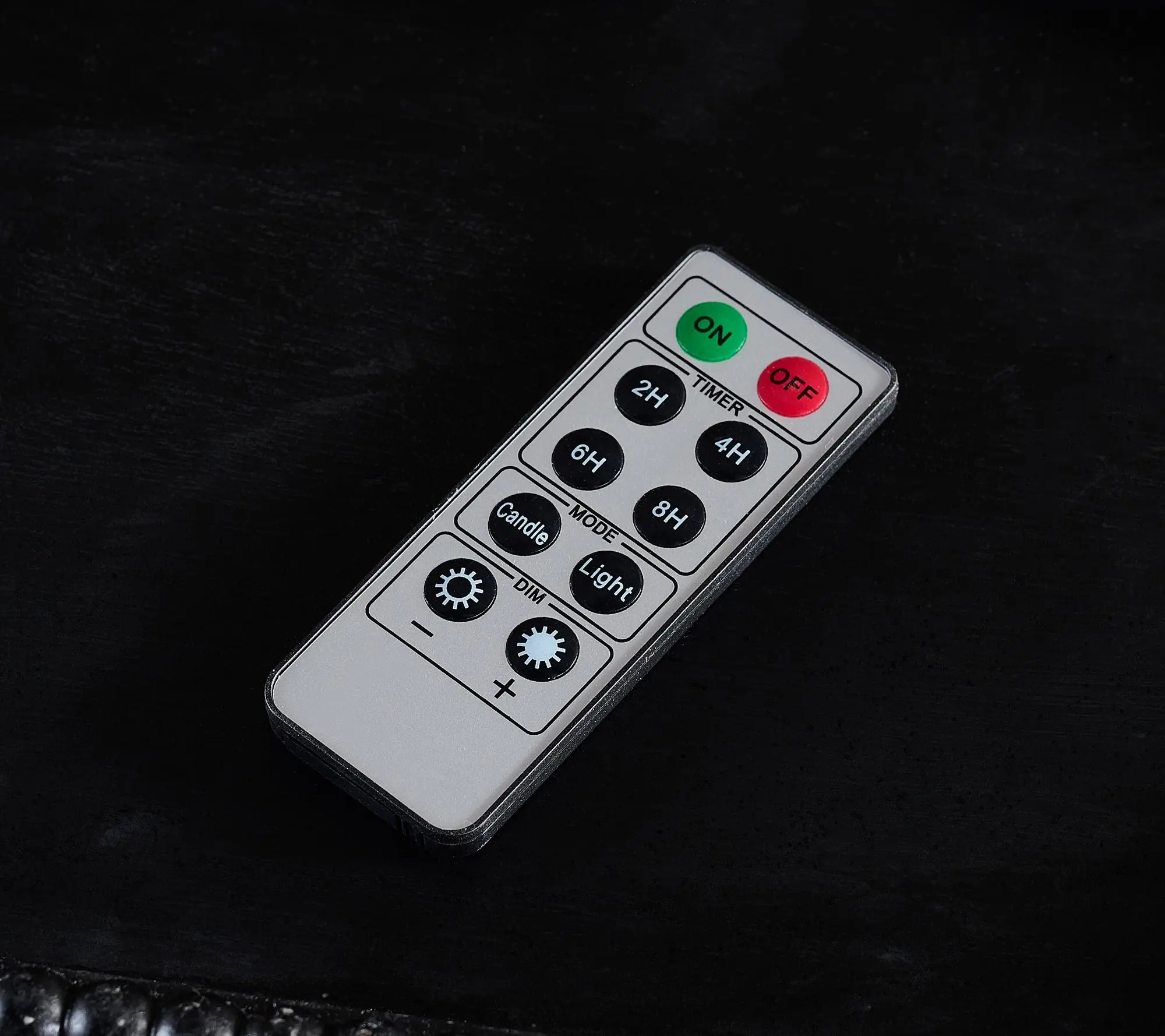 ·Includes four flameless taper candles and remote control with CR-2025 battery