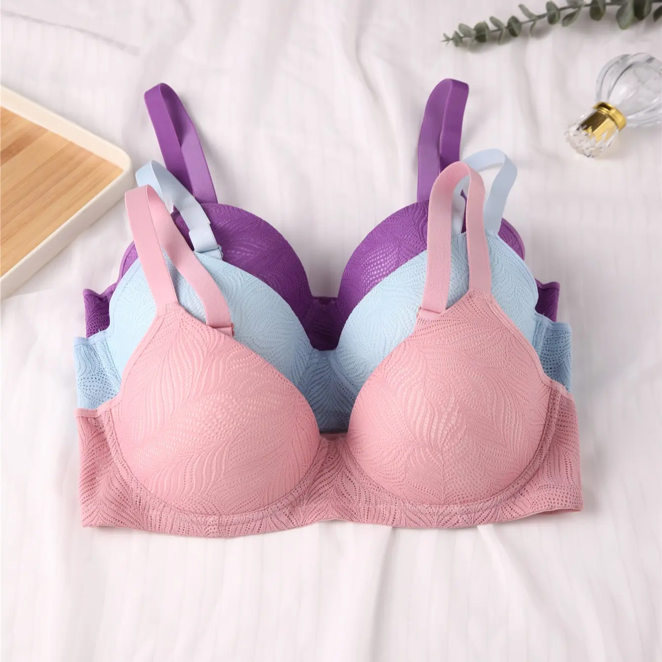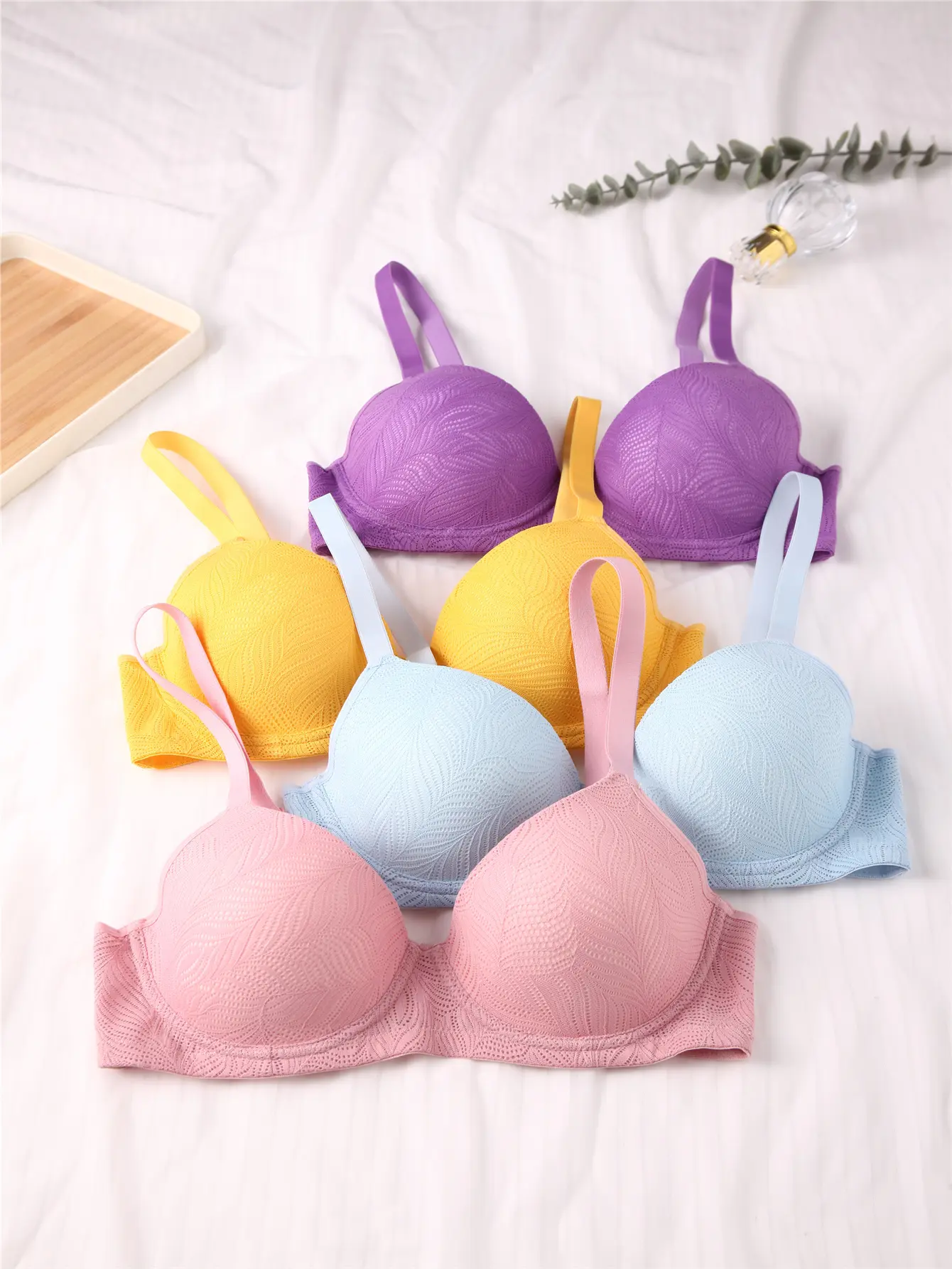 Upgrade your daily wardrobe with this set of 7 push-up bras. These bras are designed for adult women, offering comfortable support with non-removable padding. The underwire design provides a structured look, while contrasting lace adds elegance. Available in multiple colors, they're perfect for everyday wear. Enjoy the convenience of machine washing and the comfort of knitted fabric.