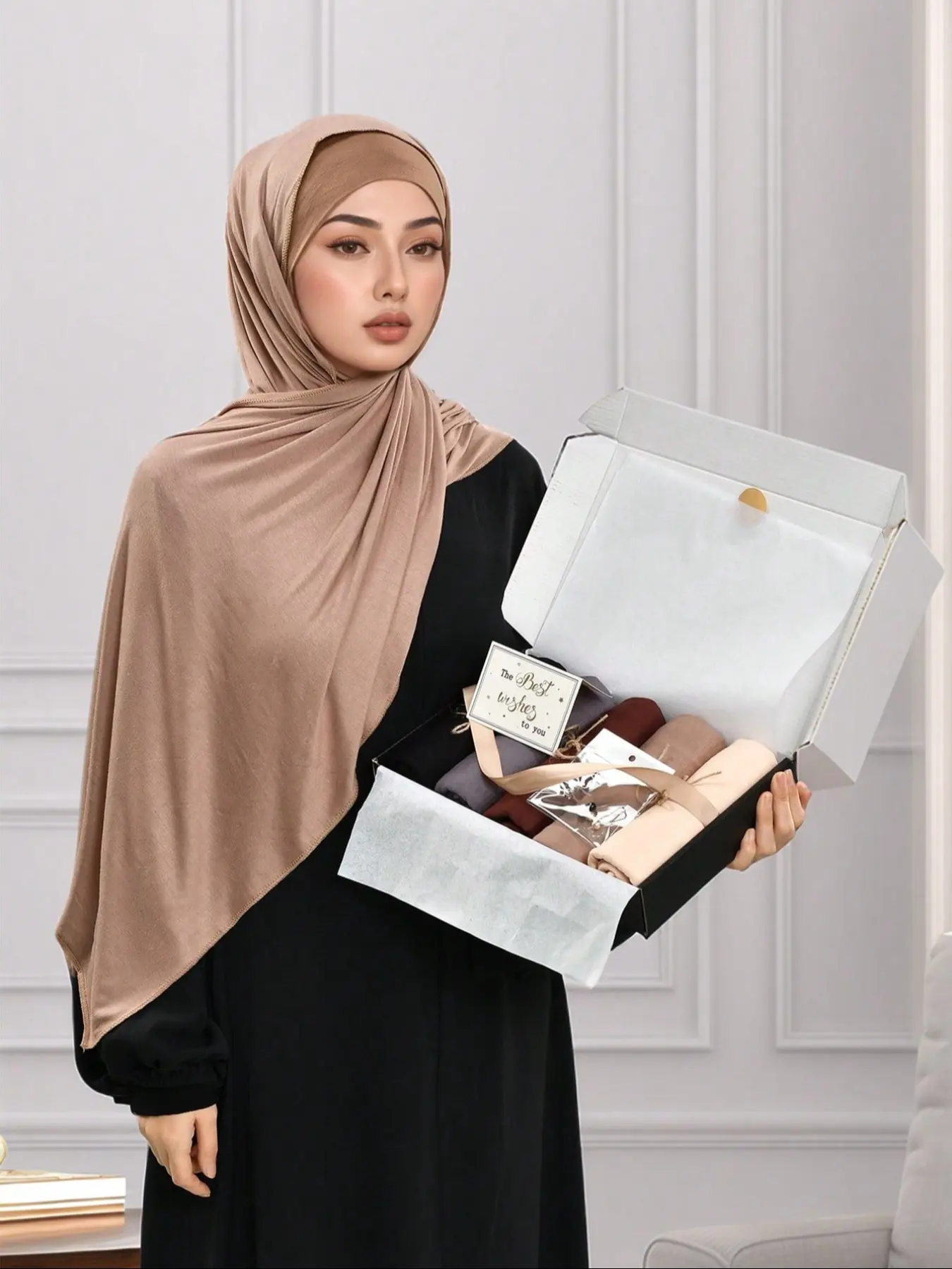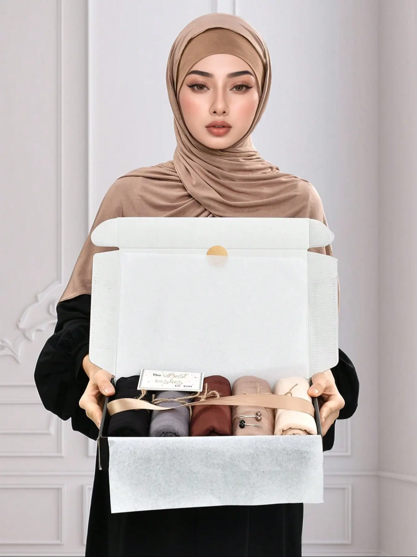 5. Set of 5 Chiffon Scarves, Modest Hijab and 2 Hair Clips, Matching Colors & Patterns, Perfect for Ramadan & Daily Wear, Includes Gift Packaging