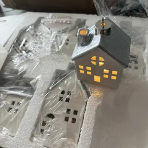 5. Set of 6 Ceramic Illuminated Mini Houses by Lauren McBride