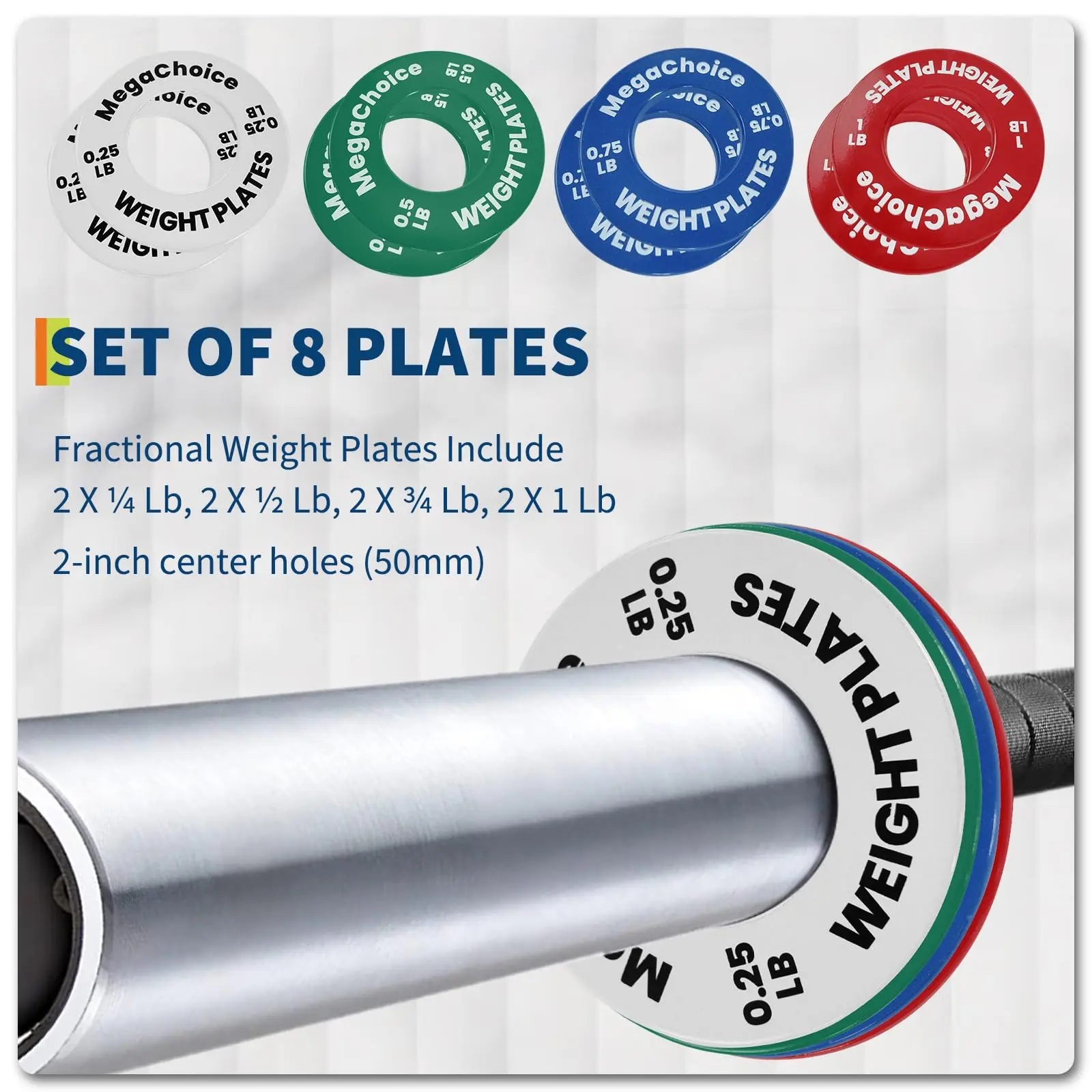 · Complete Set of 8 Fractional Weight Plates: Includes 2 x ¼ LB, 2 x ½ LB, 2 x ¾ LB, and 2 x 1 LB plates. Perfect for progressive overload, these steel weight plates help you increase load in small increments, ideal for strength training and micro weight adjustments on 2-inch barbell bars