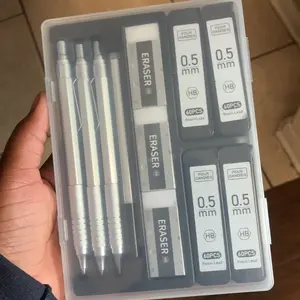 ·【Exquisite Metal Pencil Set】 Contains 2 black + 2 silver different size 0.5mm and 0.7mm mechanical pencils, 8 tubes 0.5mm&0.7mm (480PCS) of HB pencil lead, 3pcs 4B-soft erasers, 9pcs cap eraser refills and a plastic storage box.