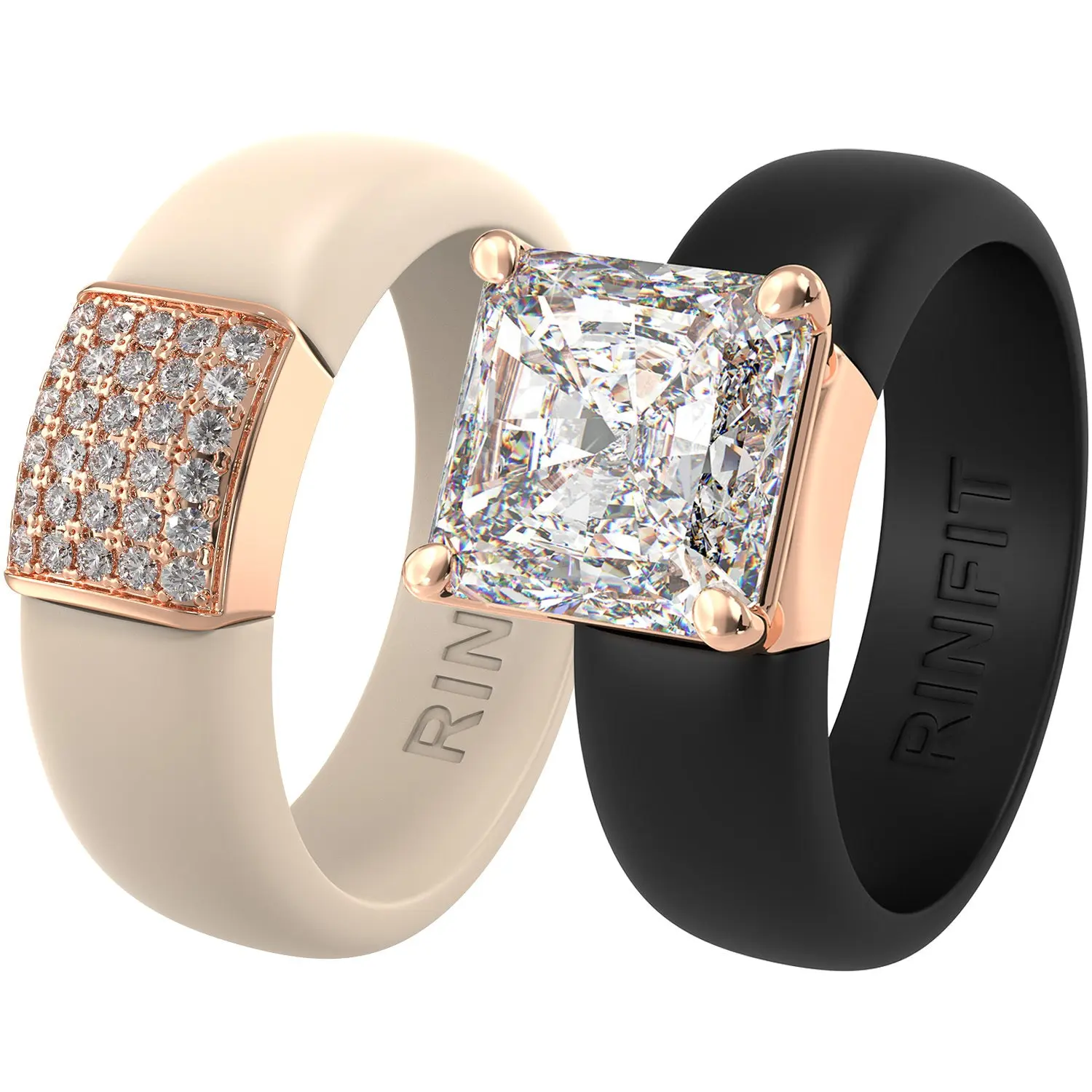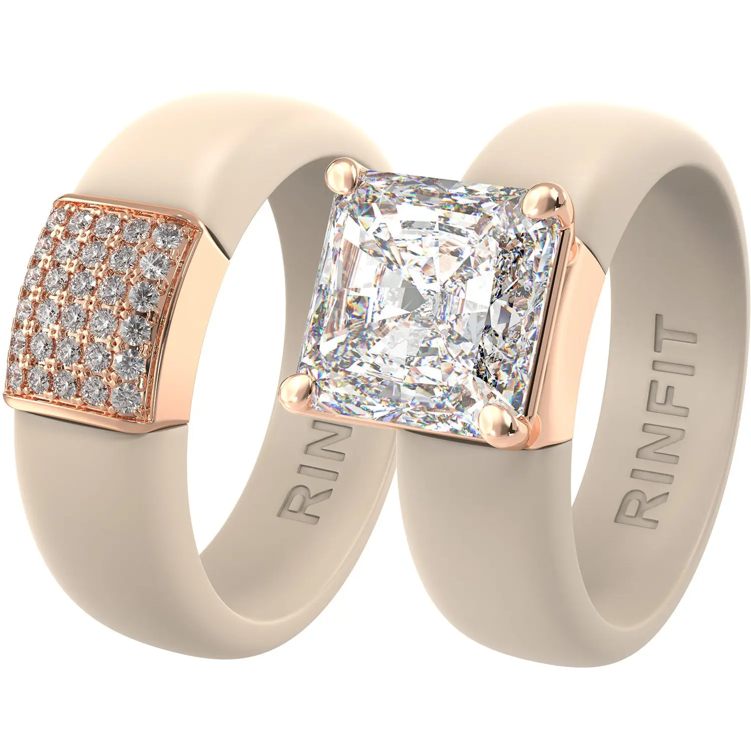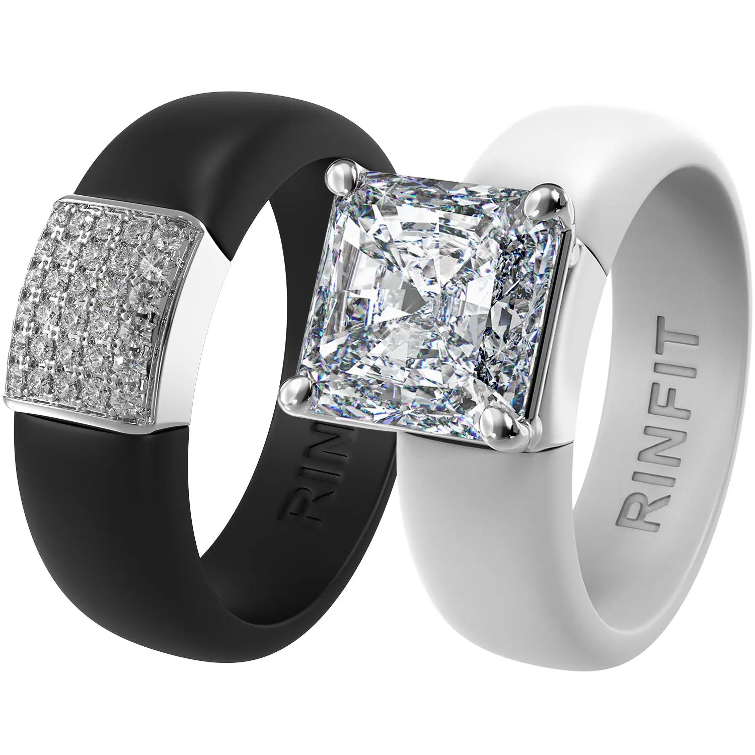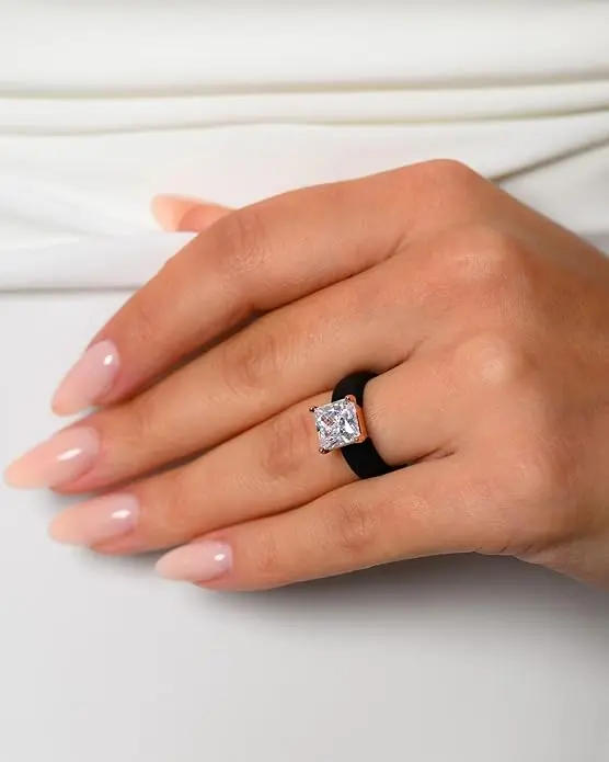 This ring features a beautifully bold 8×8 mm Princess Cut CZ stone set in a soft, flexible silicone band. Designed for those who live, love, and shine in motion.