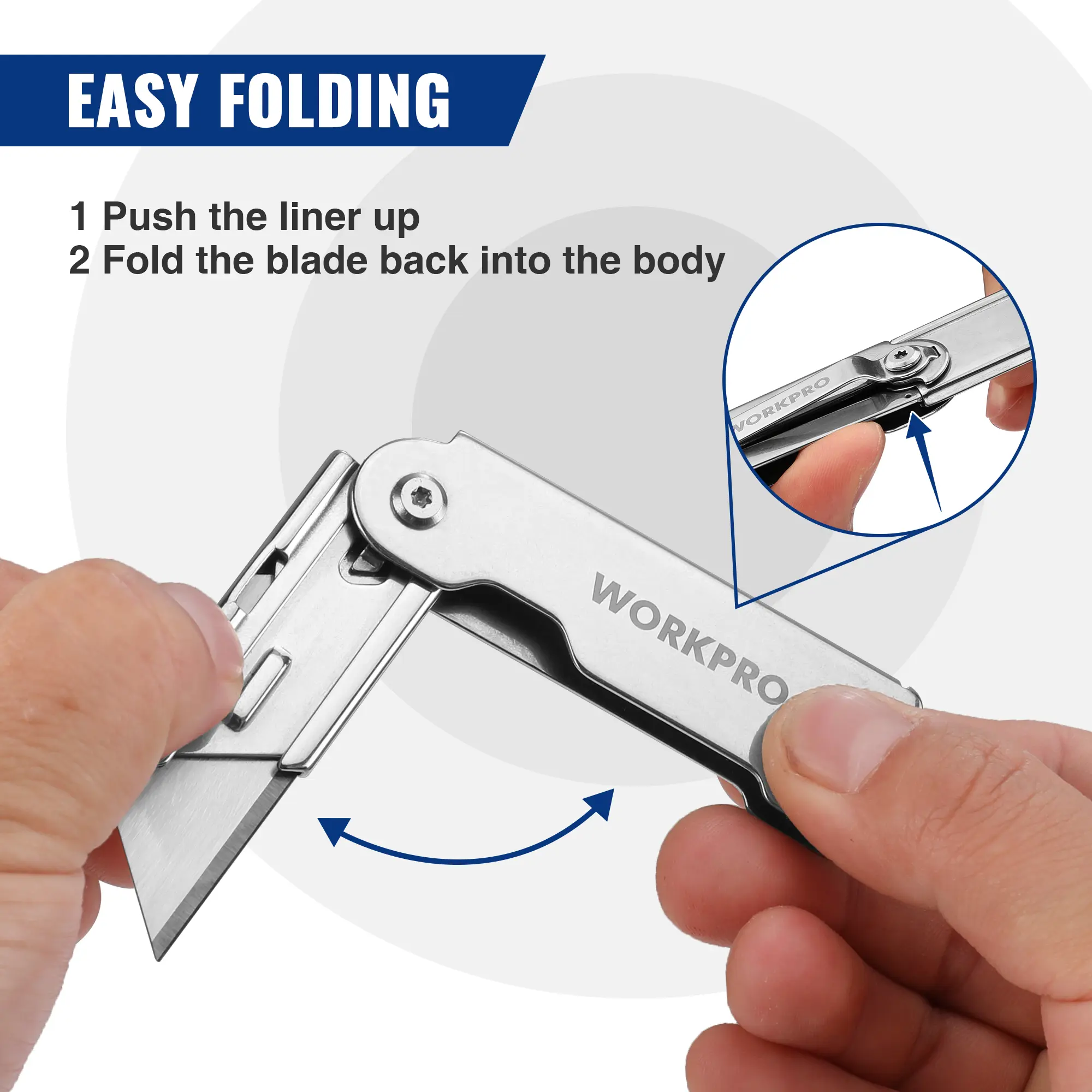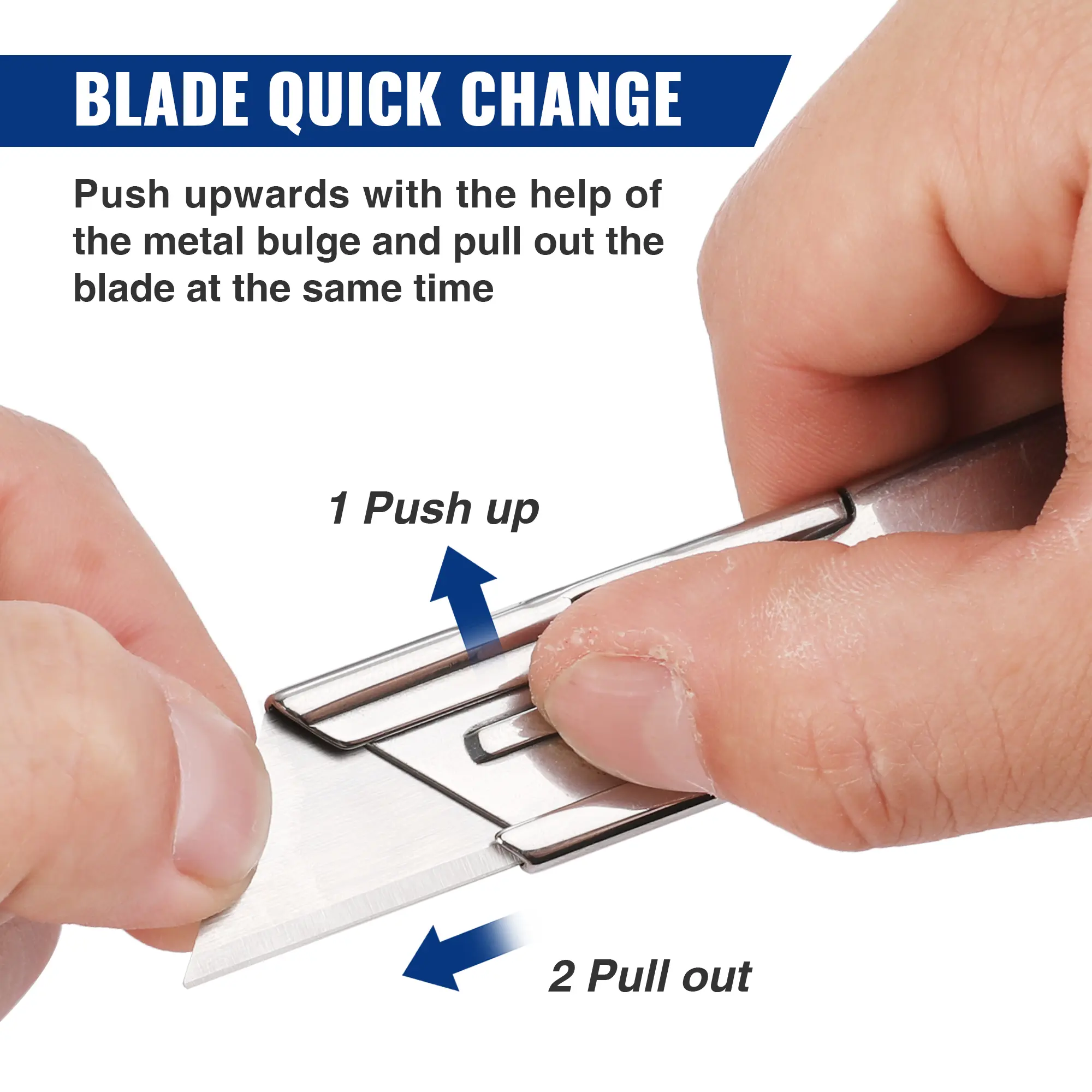 ·Quick Blade Change Mechanism. For changing blades, you can quickly change the blade with just your hands, no need for a screwdriver or any other tools for disassembling. One more big plus is that it accepts all standard or pro-grade utility knife blades