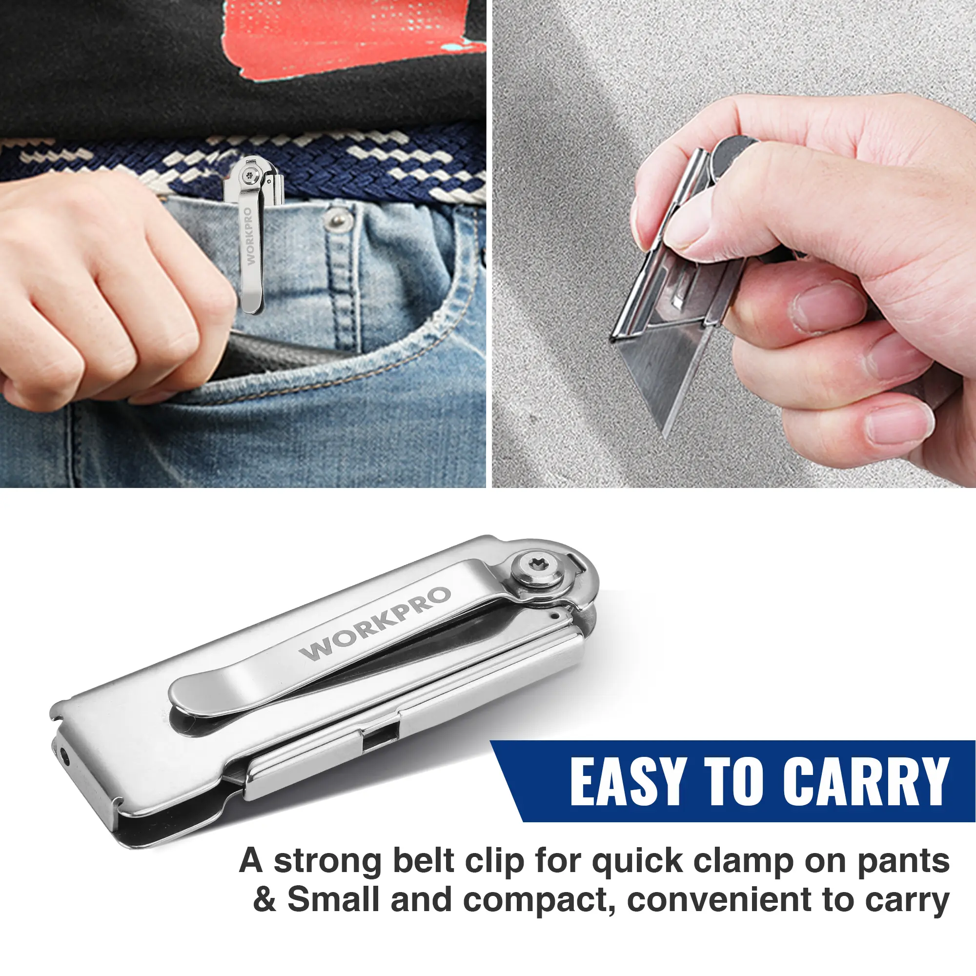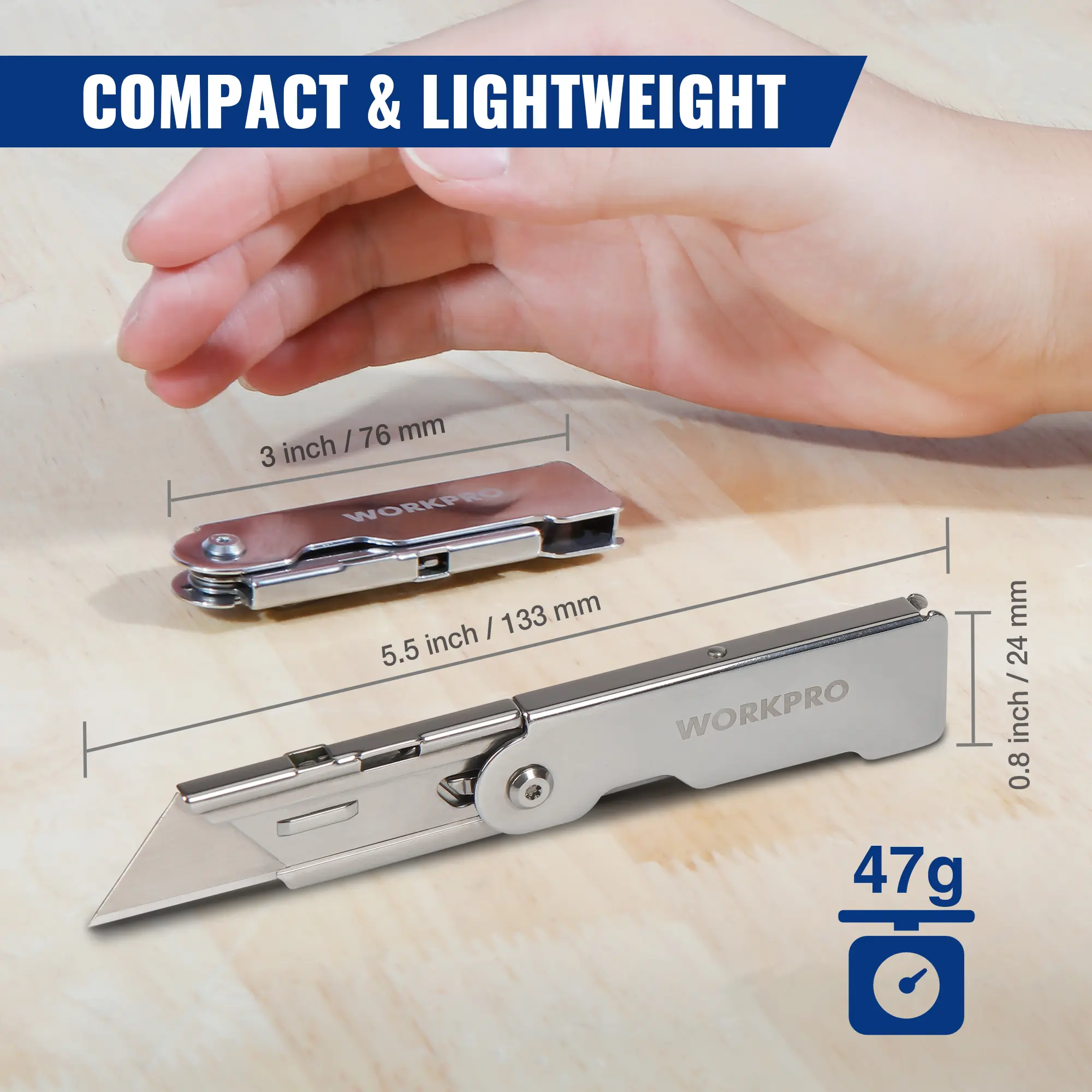 ·Compact for Easy Carry. The pocket clip is designed to keep the folding utility knife in your pocket and it effectively avoids the mechanism shifting which causes the clip to spin. And they are much lighter than most knives, only 1.66 oz. It's extremely small, only 3-inch long when it is closed. So It fits perfectly in a small pocket of pants or clothes and It looks almost invisible while in a pocket
