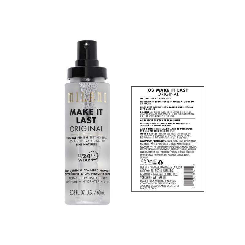 With up to 24HRS of wear, America’s #1 Setting Spray delivers waterproof, sweatproof results you can count on to lock-in your look for the long haul.* Made with moisture-rich Glycerin and multi-tasking skin powerhouse 2% Niacinamide, this lightweight spray preps, hydrates & sets makeup leaving skin with the perfect natural finish. The vegan & cruelty-free formula also helps keep makeup from fading & settling into lines so your look lasts all day, and night. Ideal for anyone who wants their makeup to stay flawless