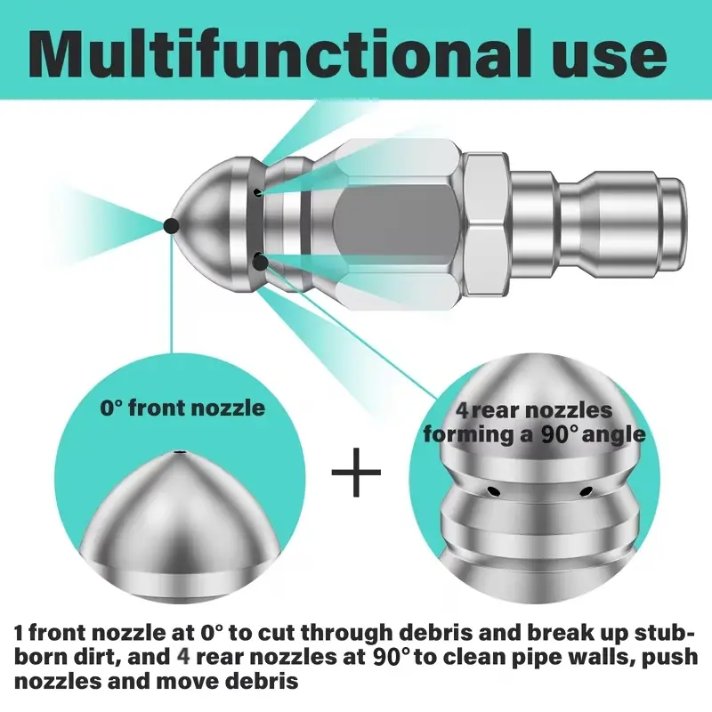 🔥¡Boquilla limpiadora de tuberías de alta presión! 65000 PSI de potencia para limpiar obstrucciones, acero inoxidable resistente, conector rápido de 1/4” para instalar fácilmente~#SewerCleaning #HighPressureNozzle #CleaningTool #StainlessSteel #QuickConnector #foryou