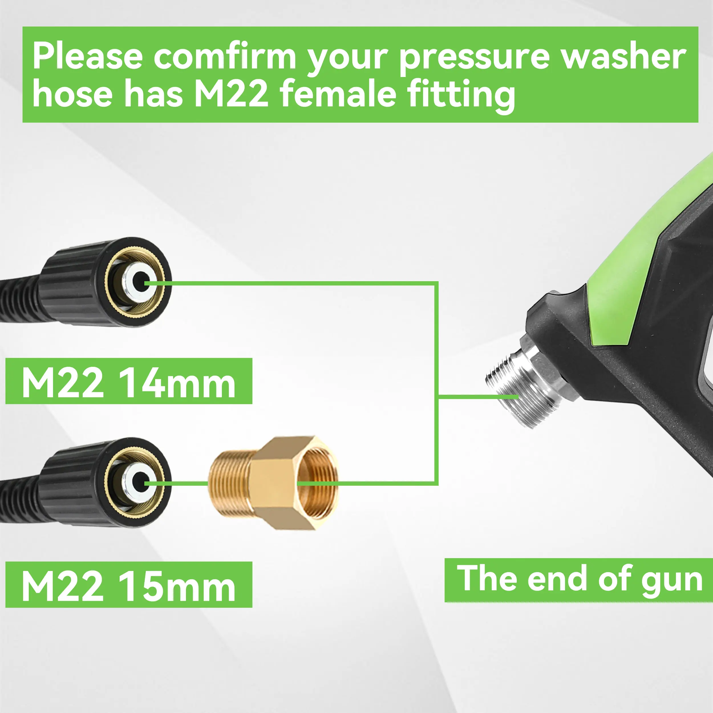 Comes with a short spray lance compatible with M22-14mm and M22-15mm connections. Not suitable for garden or water hoses. The wand allows easy on/off control at your fingertips—no need to return to the machine. Features a comfortable grip and safety lock for secure use.