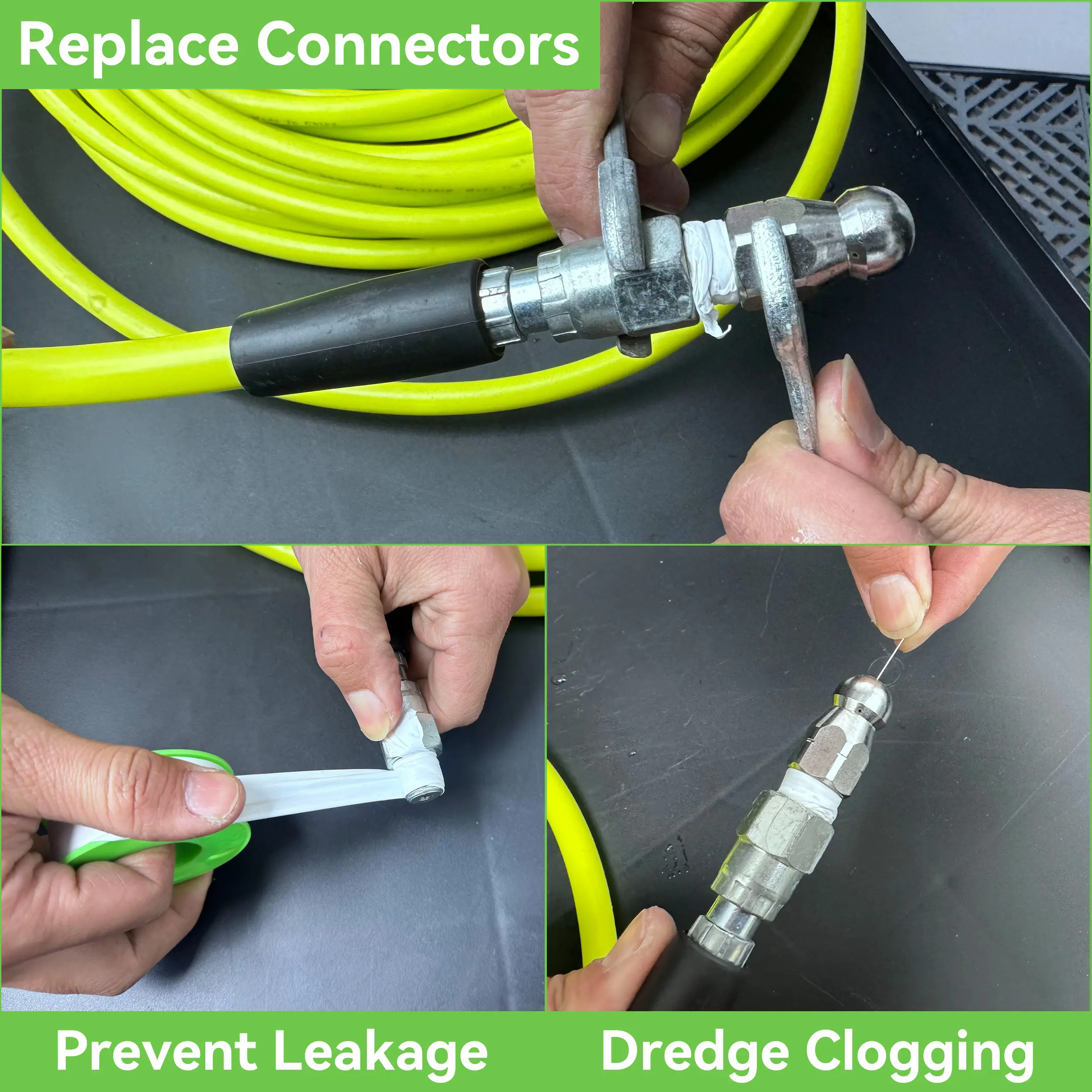 Perfect for unclogging and cleaning drains, sinks, toilets, roofs, gutters, and more. Includes tools for easy nozzle changes and cleaning, plus Teflon tape to prevent leaks. Compatible with most pressure washers for fast, effective clog removal and general cleaning.